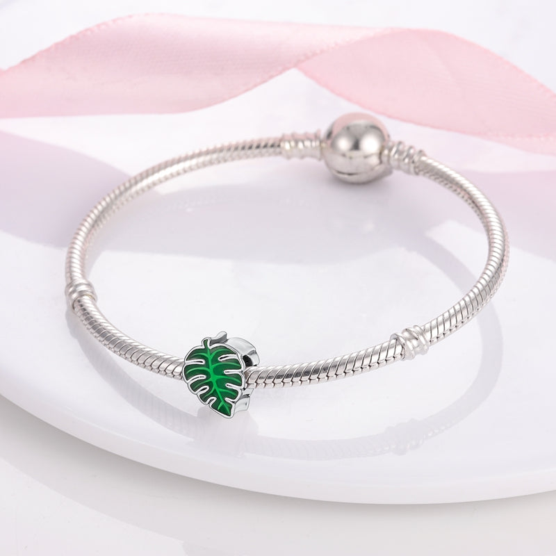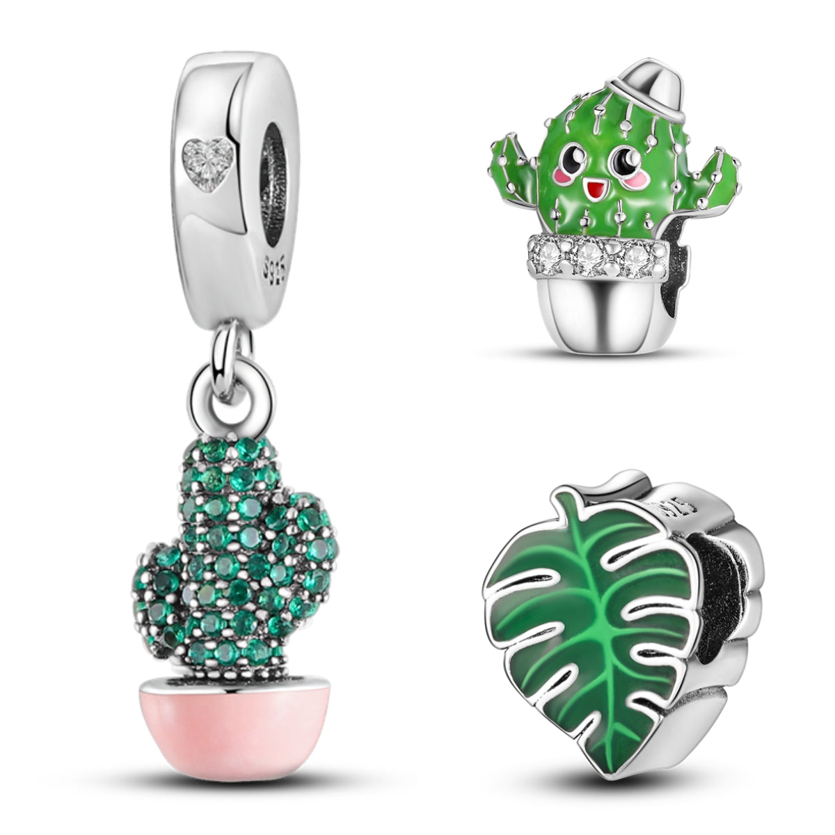 This charm pendant features a tropical leaf cactus potted design, perfect for creating unique bracelets. Ideal for DIY jewelry projects and as a thoughtful gift.