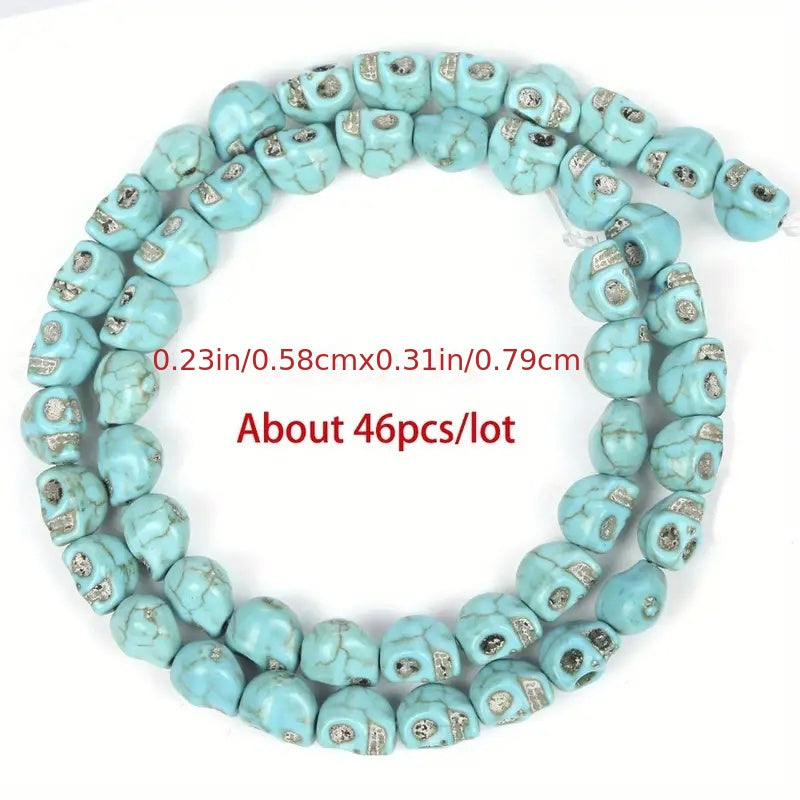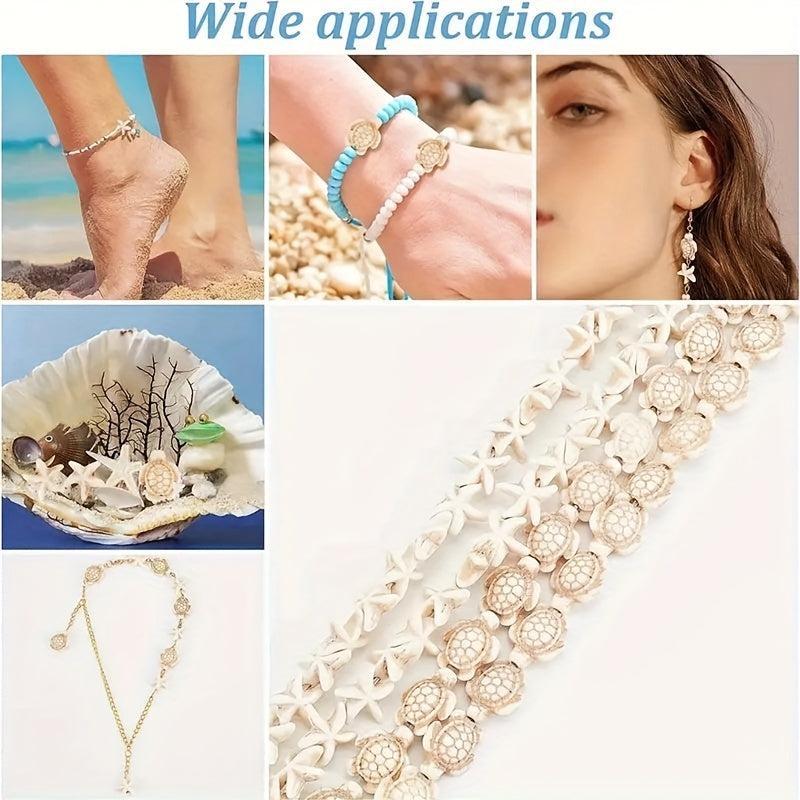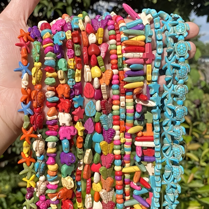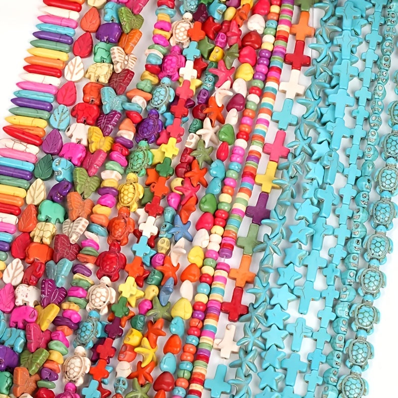 Create stunning bracelets and necklaces with this set of turquoise beads featuring starfish, turtle, elephant, leaves, and skulls design. Perfect for DIY jewelry making.
