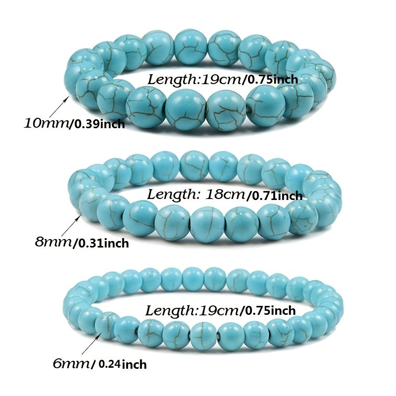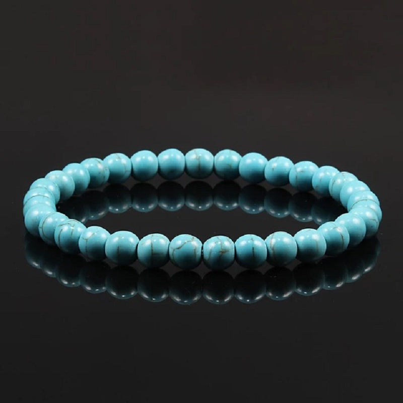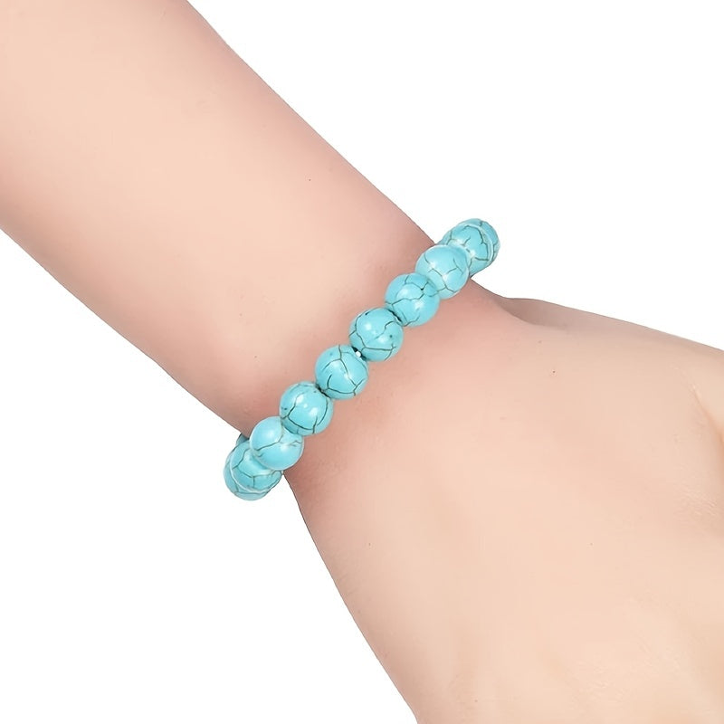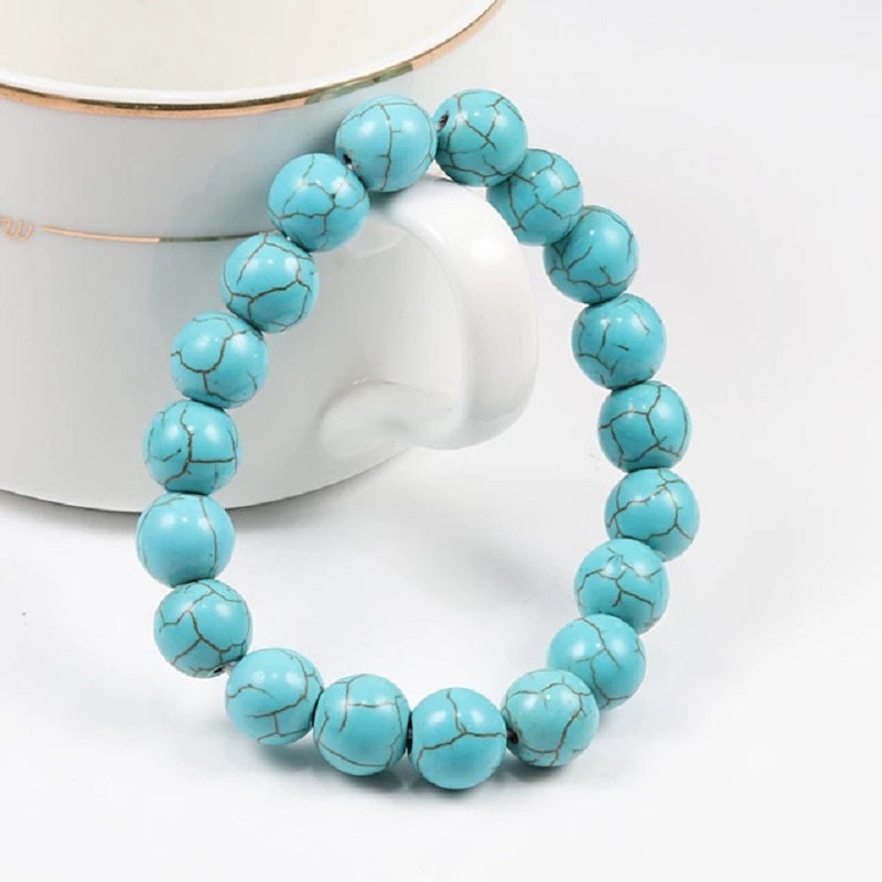 This elastic stretch bracelet features round turquoise gemstone beads that fit all sizes for both men and women.