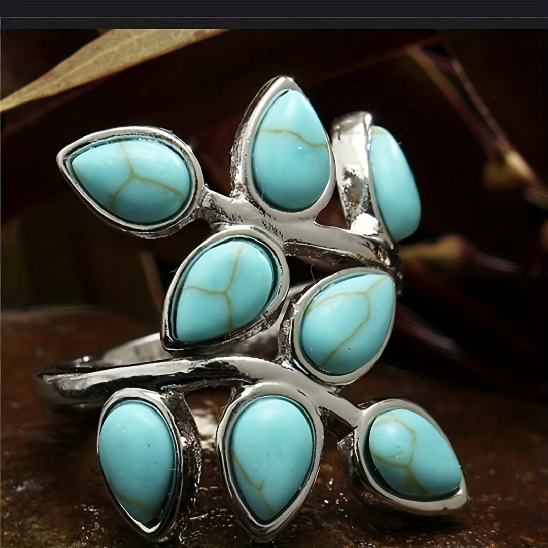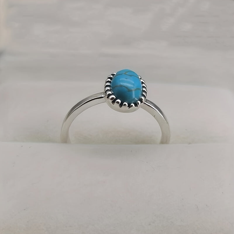 Add a touch of elegance with this silver plated metal ring featuring a beautiful flower shape turquoise decoration.