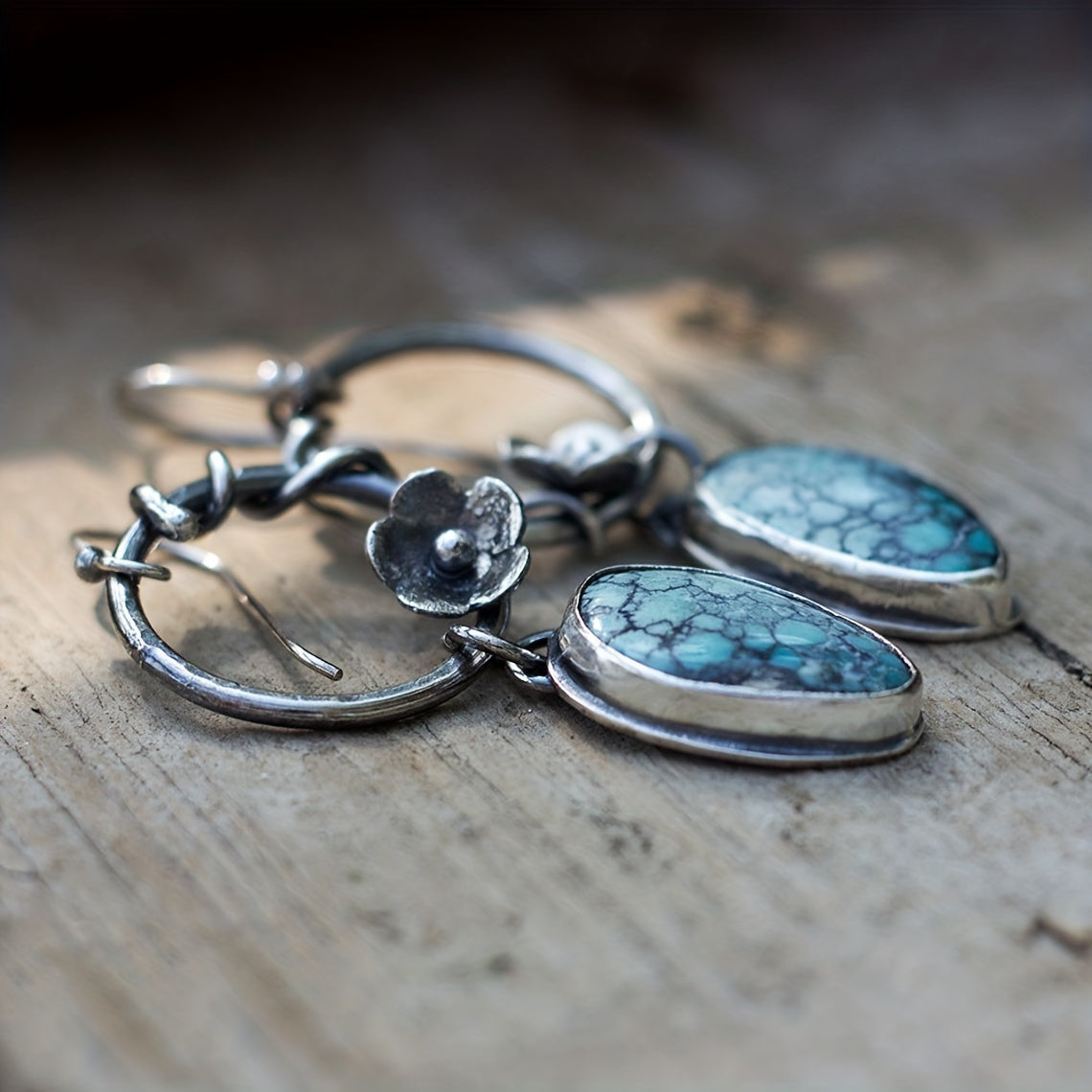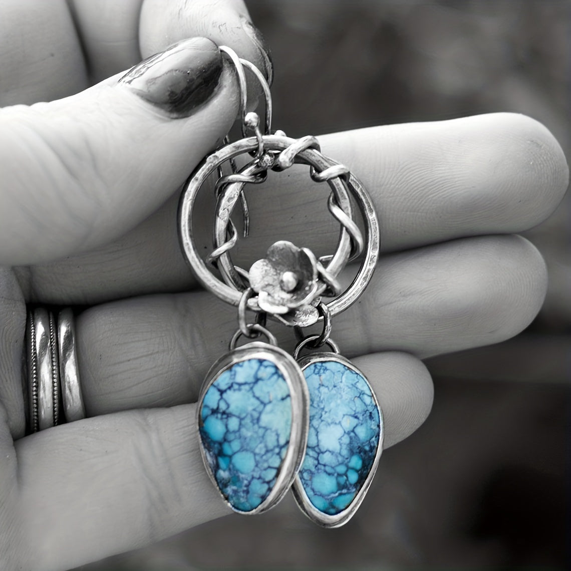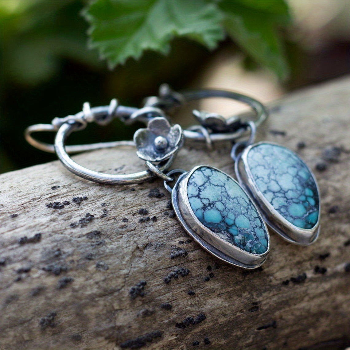 Turquoise Flower Pendant Earrings Casual Jewelry Gift