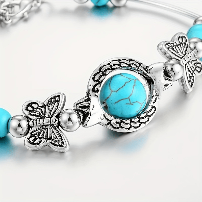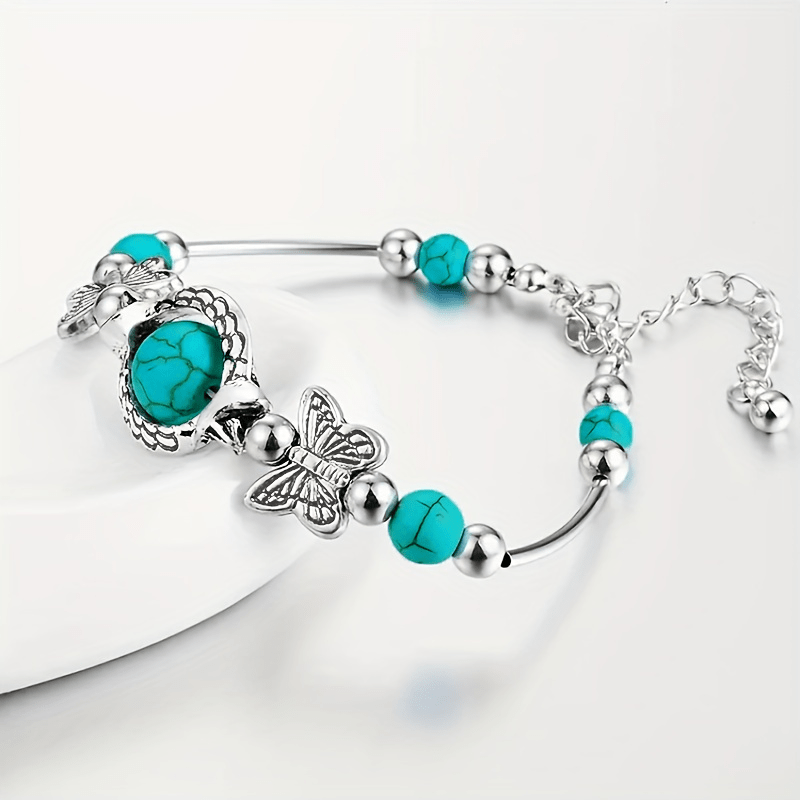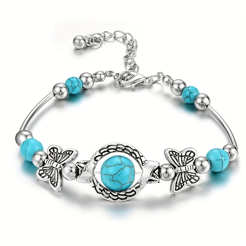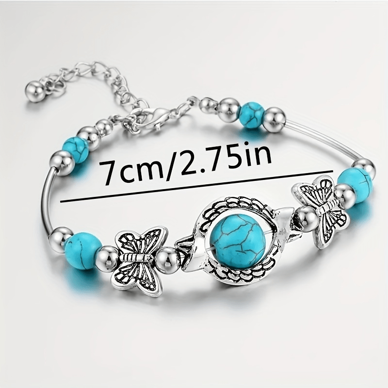This fashionable bracelet featuring turquoise glasses, butterfly, and turtle design is perfect for both men and women. Ideal for parties and birthday celebrations.