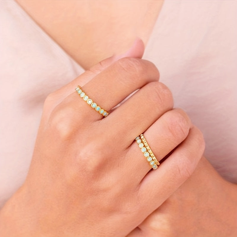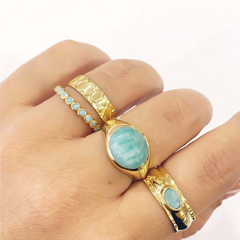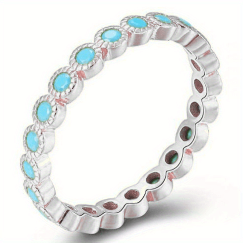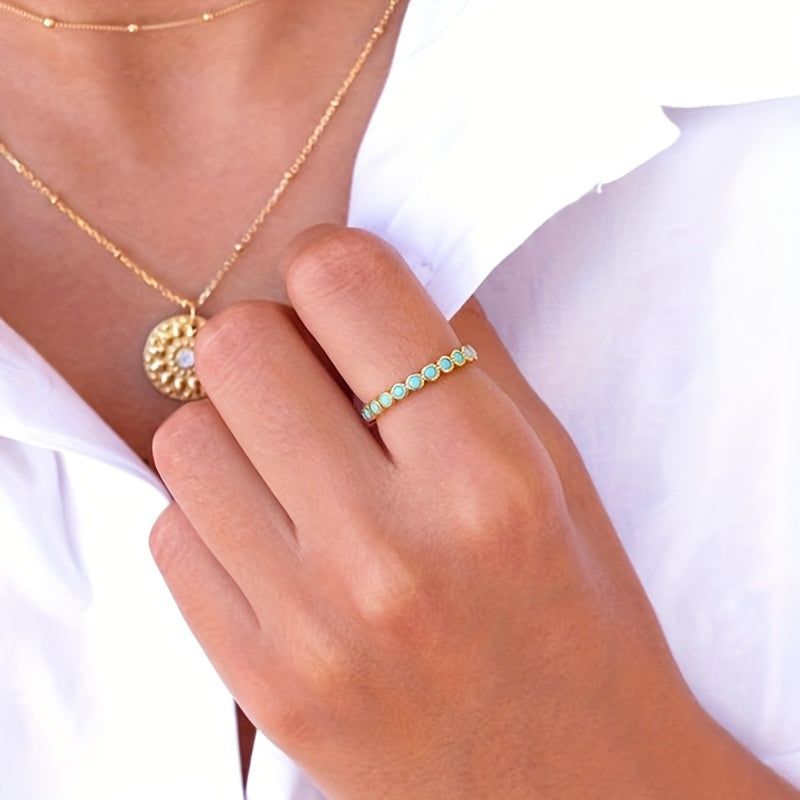 Turquoise Zircon Men's Ring Round Gemstone Copper Band