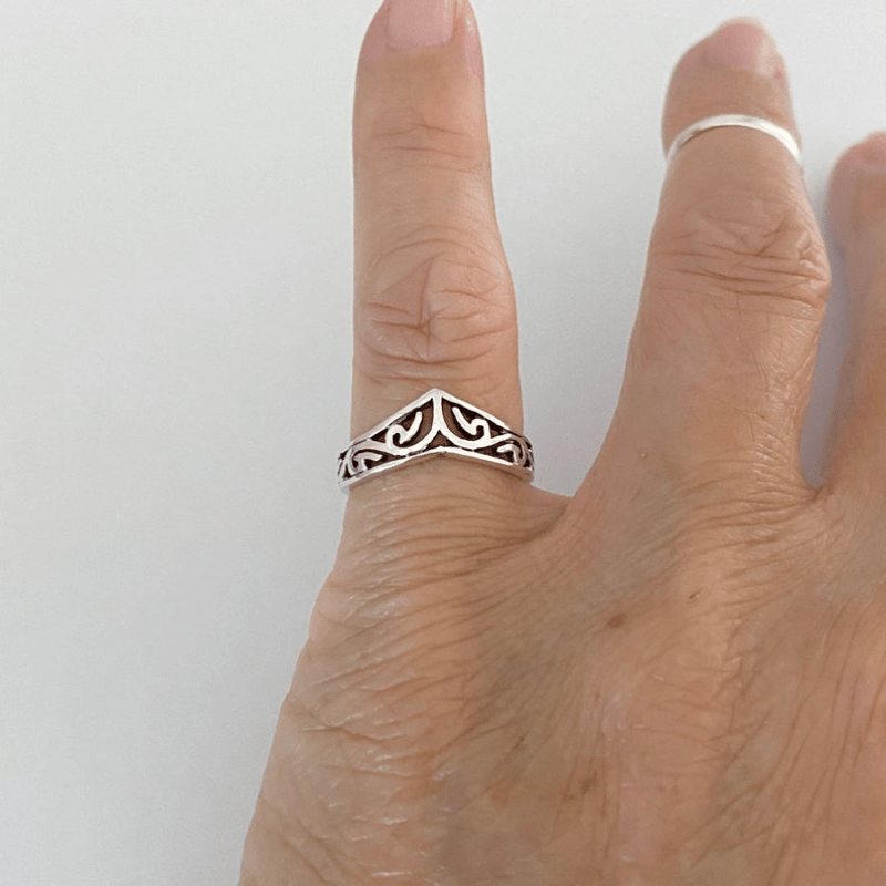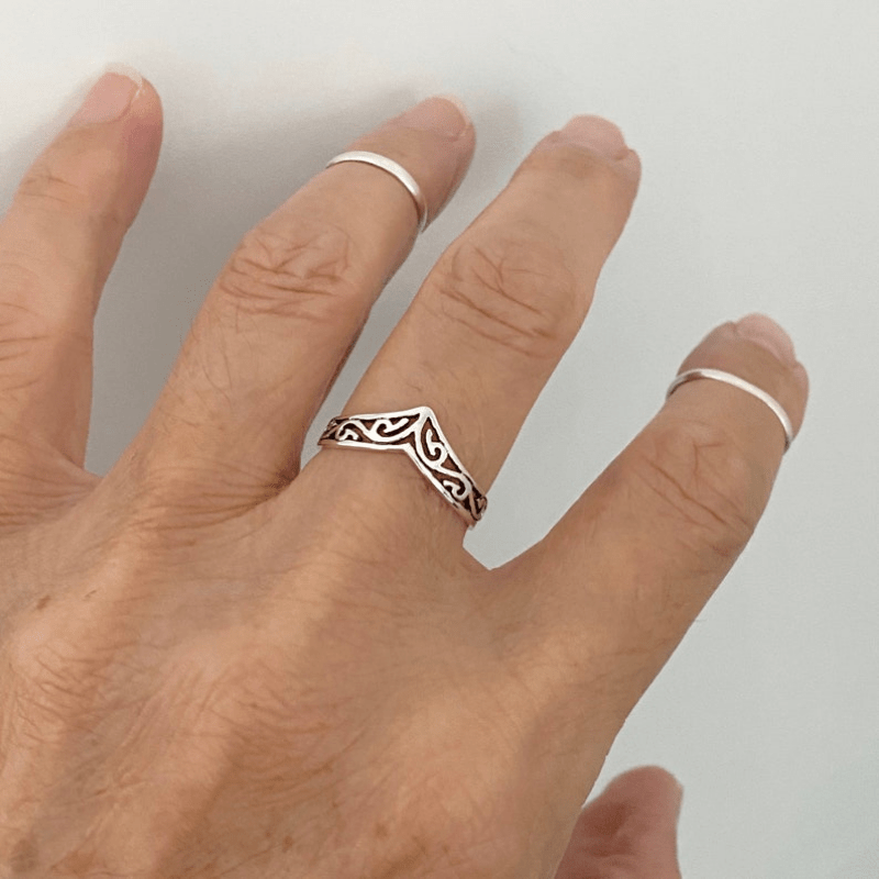 This stylish V shape ring is crafted in silver-plated metal, making it suitable for daily outfits or as a party accessory. Its sleek design is perfect for both men and women.