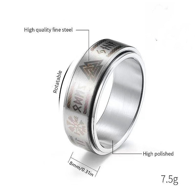 Viking Rotatable Titanium Ring Wedding Band Men Women Rune Decompression Jewelry