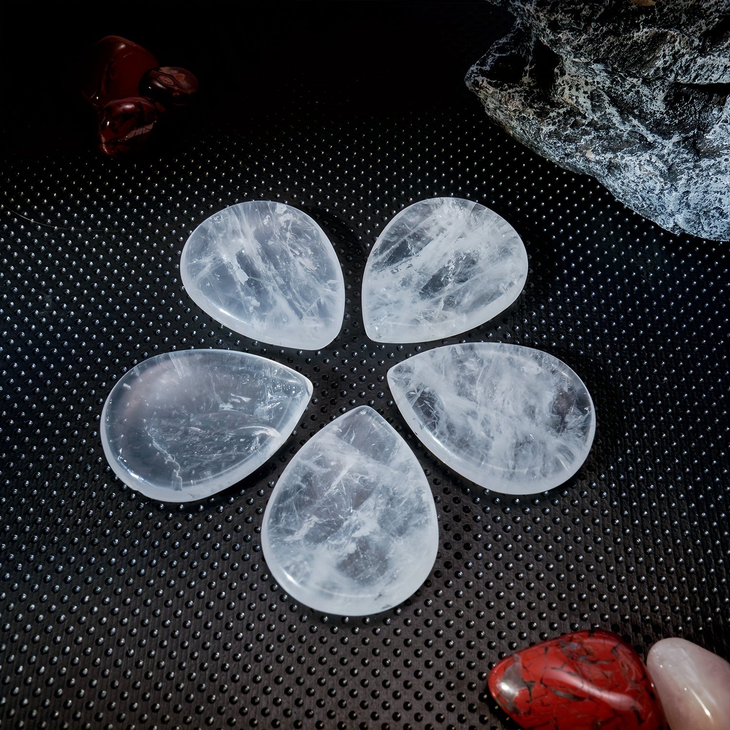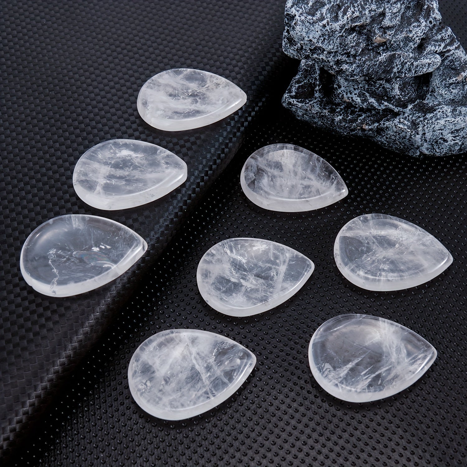 Enhance your meditation space with this exquisite water drop shaped crystal. Perfect for creating a calming ambiance during meditation sessions.