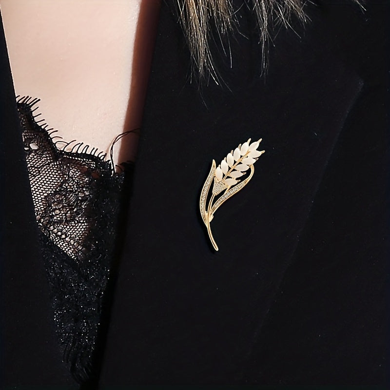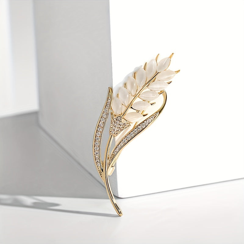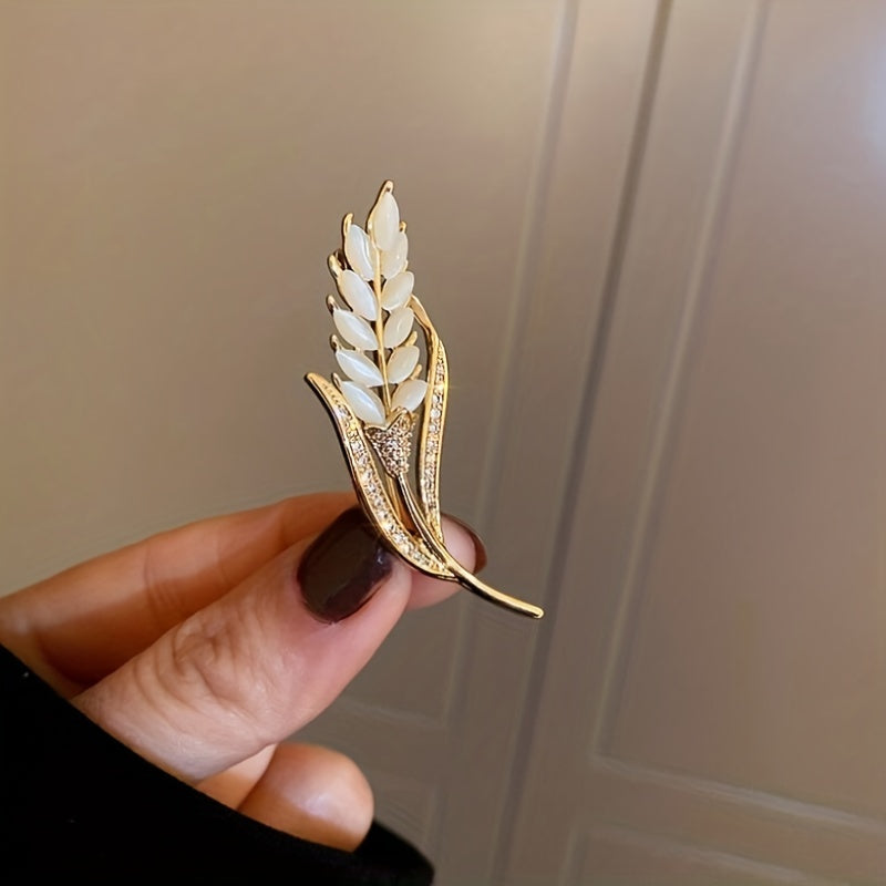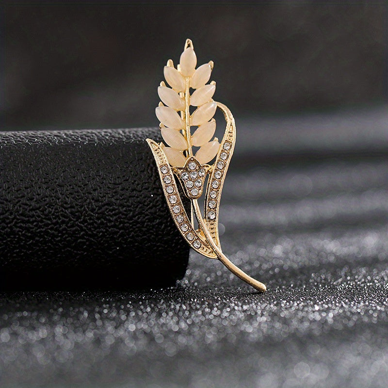 This elegant wheat brooch is adorned with sparkling rhinestones and crystals, adding a touch of glamor to your suit or coat.