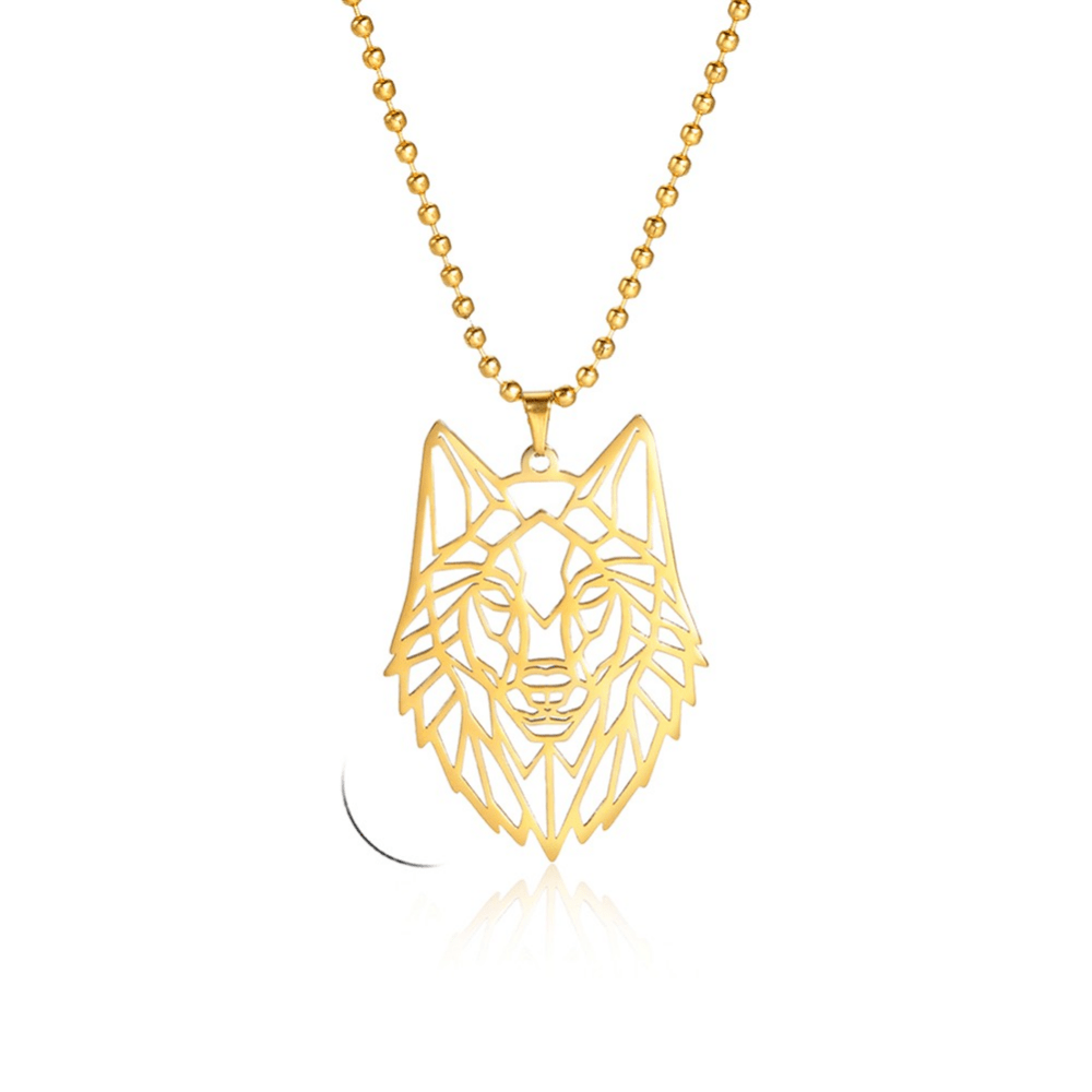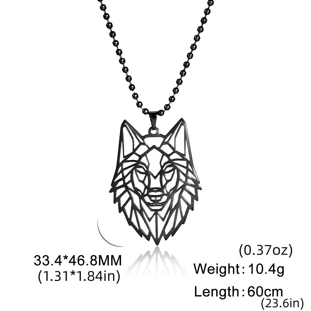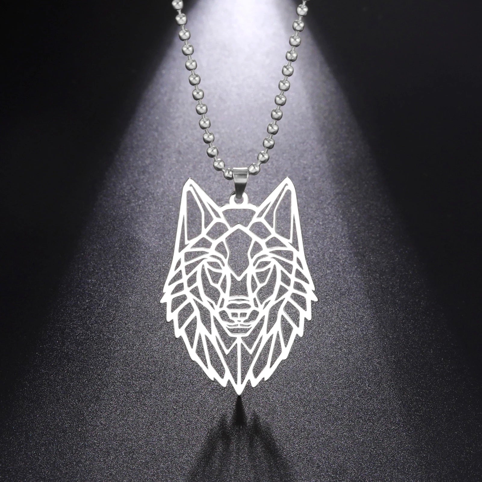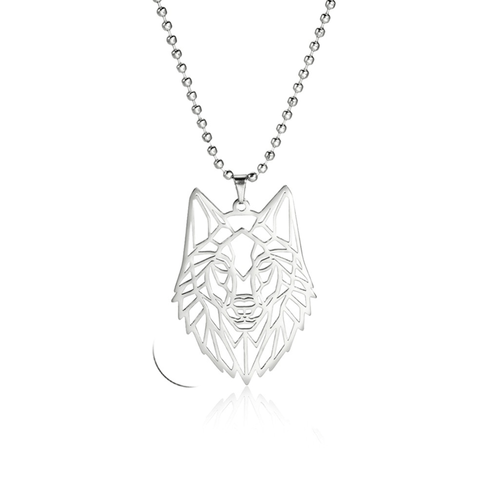 This stainless steel pendant necklace features a striking wolf head design that is perfect for both men and women.