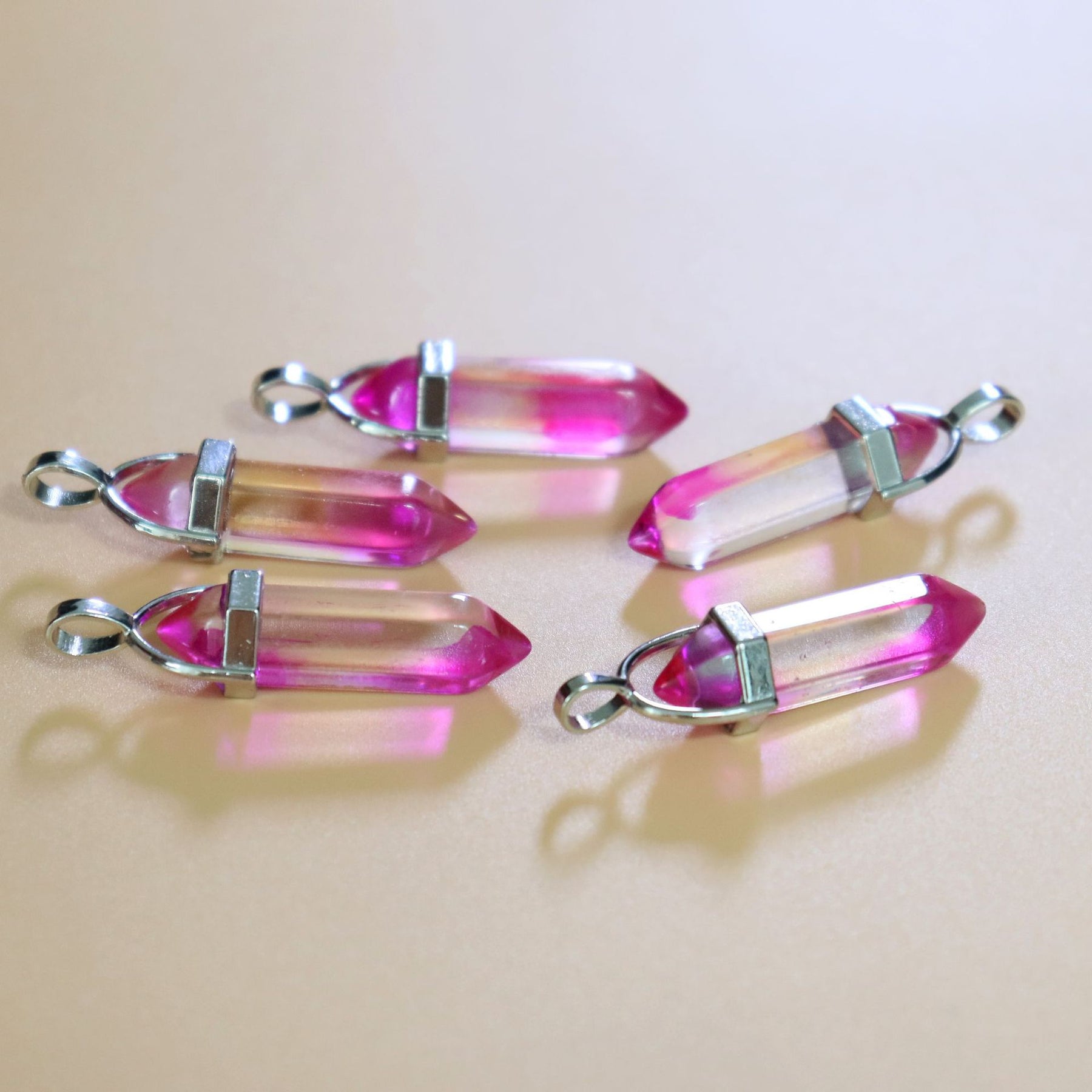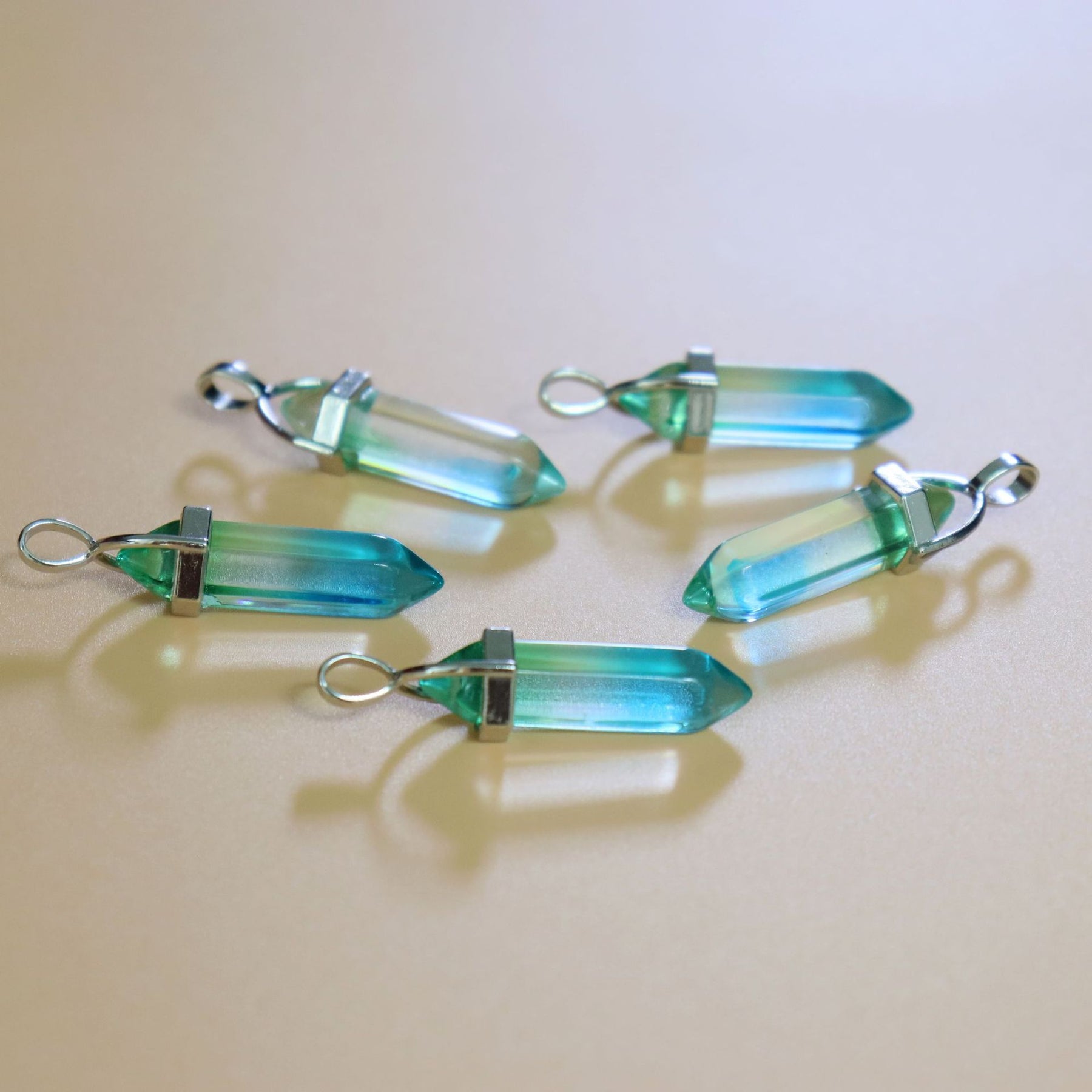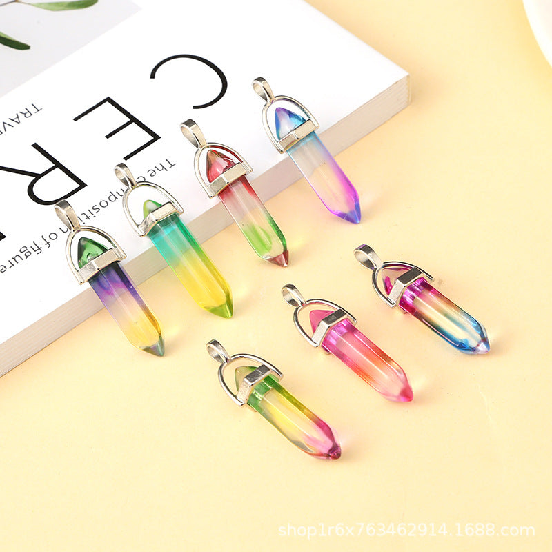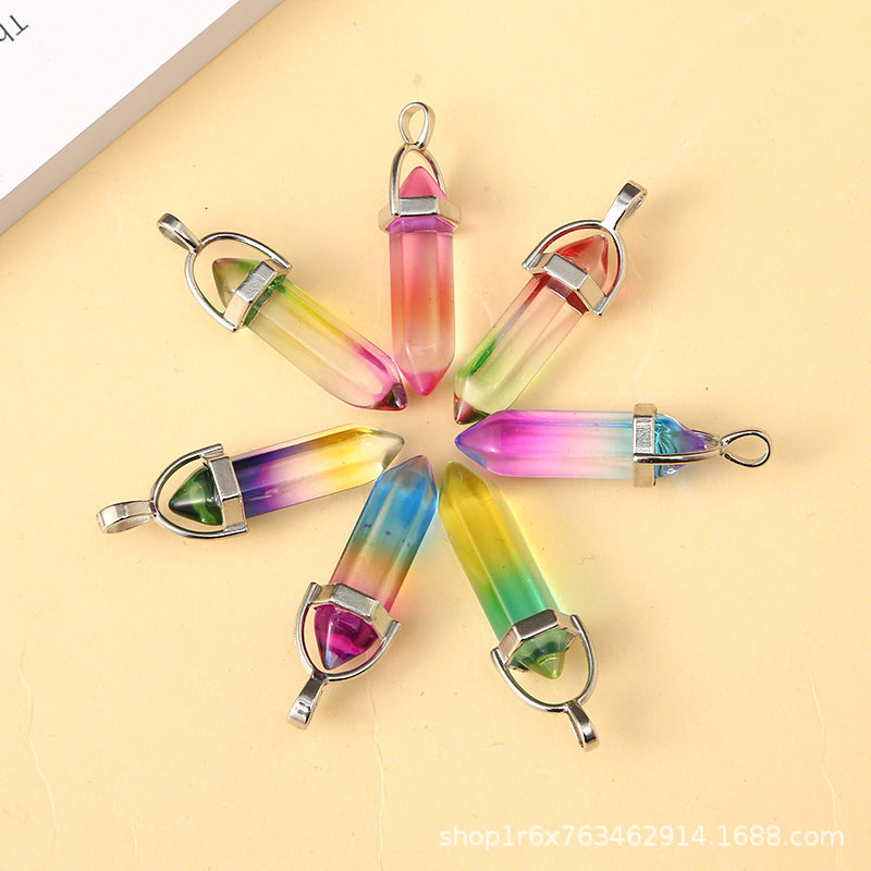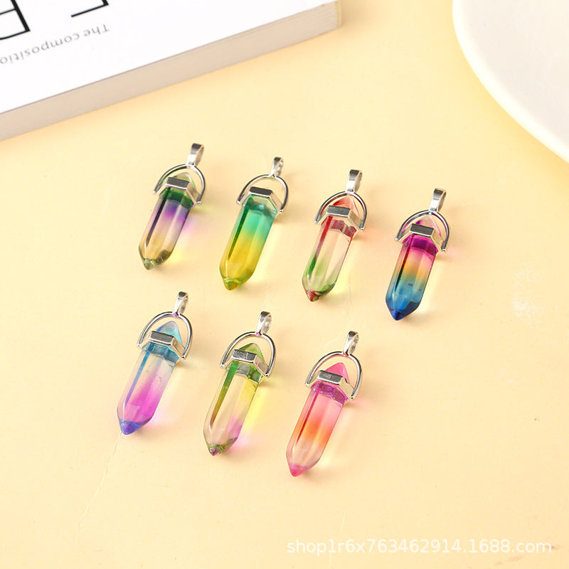 Elevate your style with this stunning crystal pendant gradient hexagonal prism necklace. The colorful glass pendant adds a touch of elegance to any outfit.
