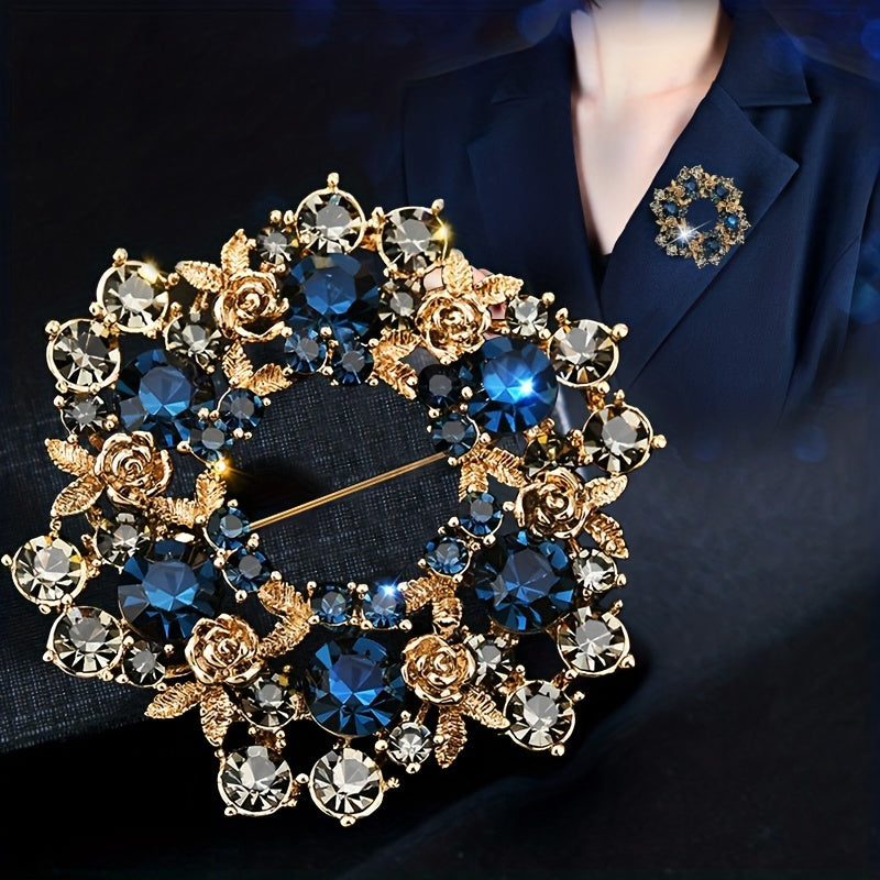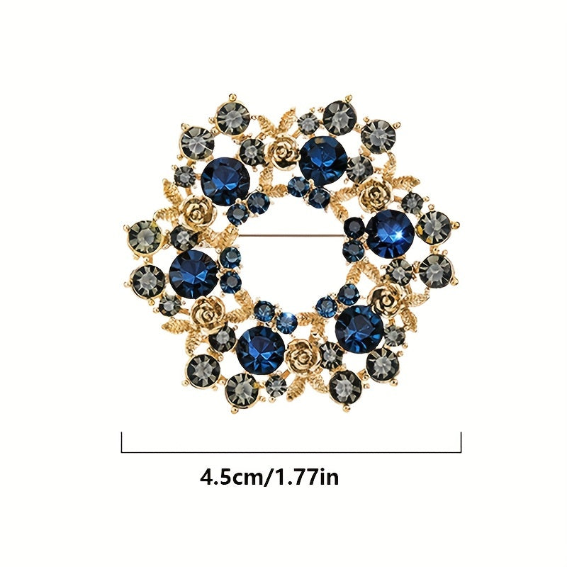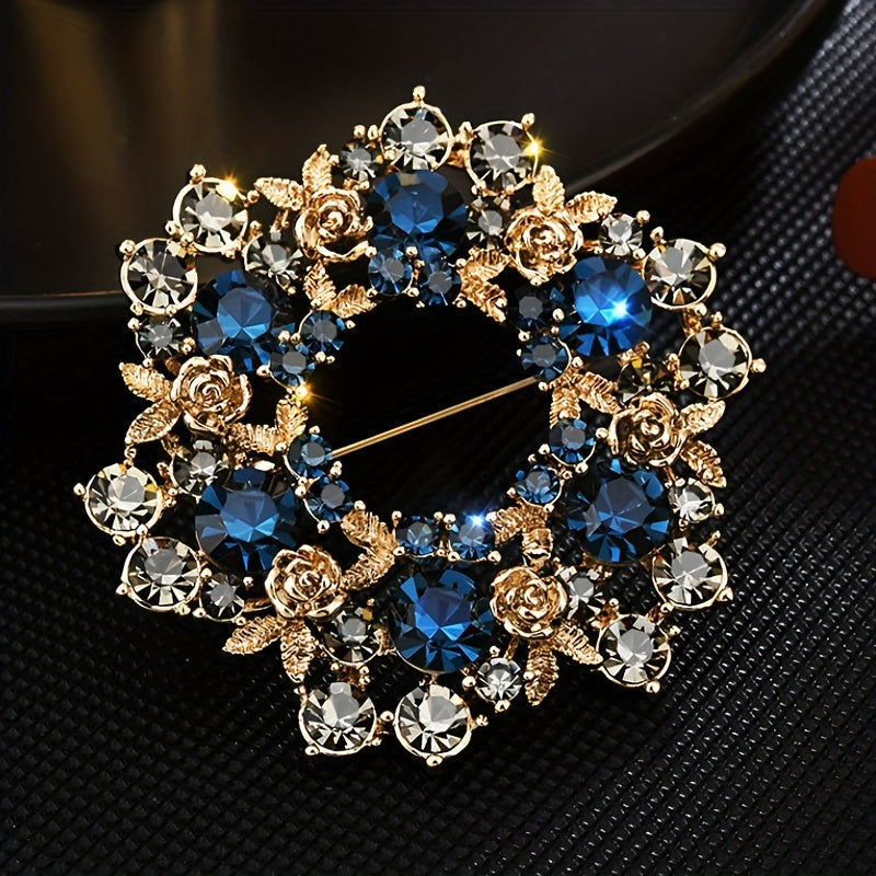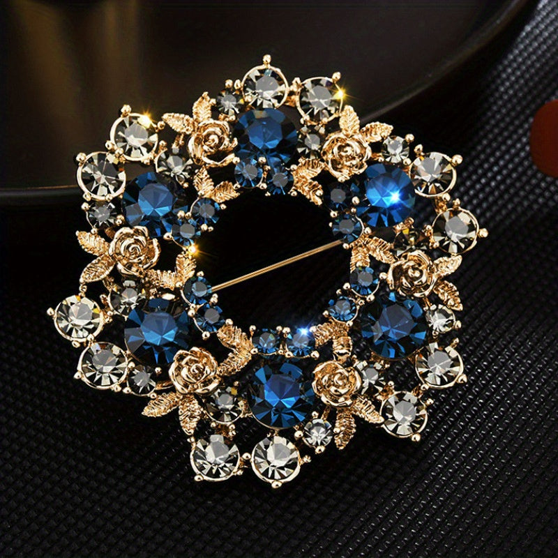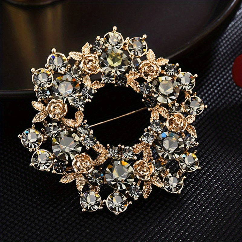 Add a touch of elegance to your outfit with this beautiful floral corsage pin featuring crystal rhinestones. Perfect for accessorizing coats, shirts, and more.