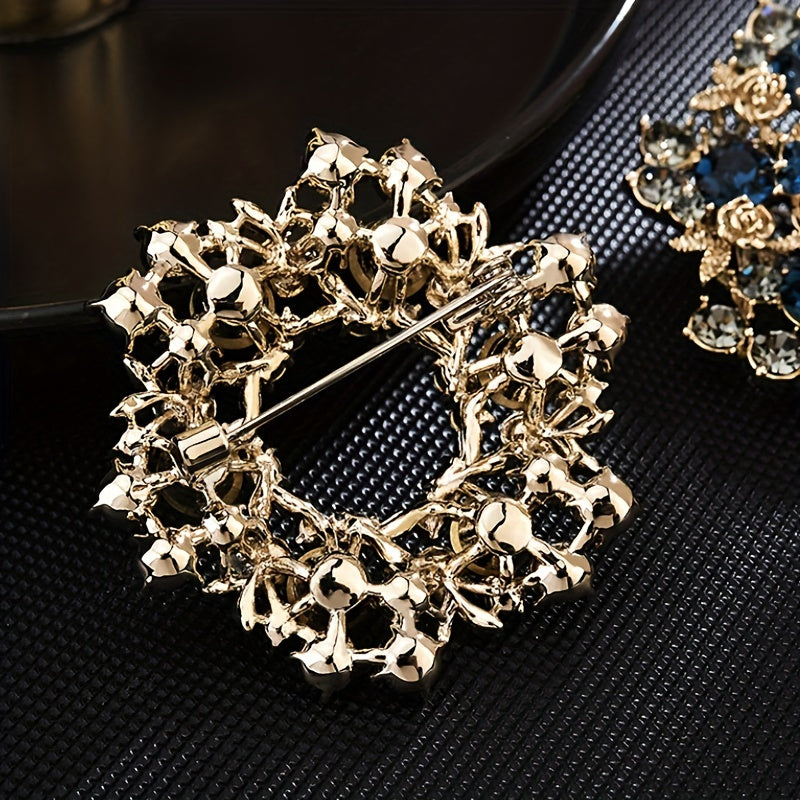 Women's Floral Corsage Crystal Rhinestone Coat Shirt Pin