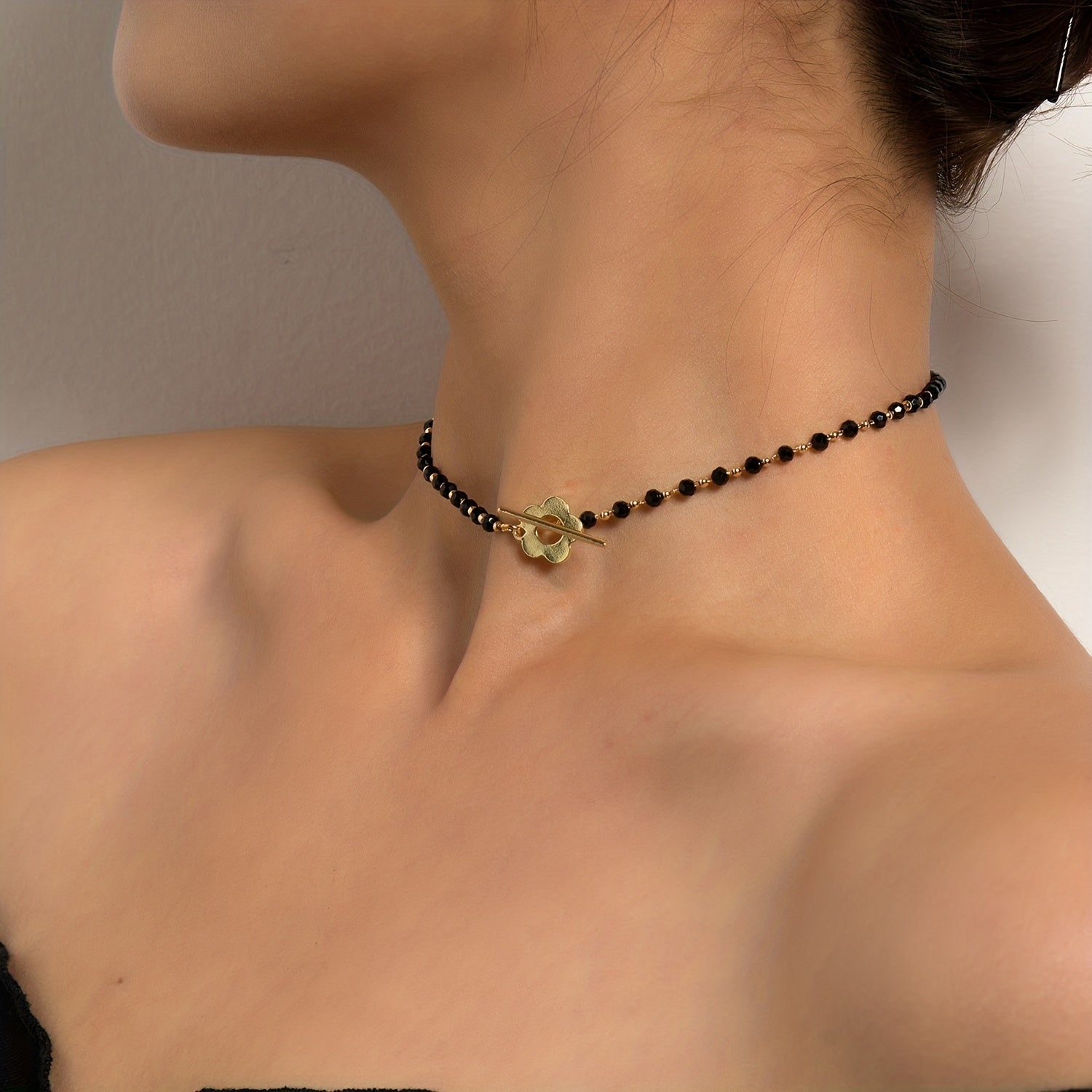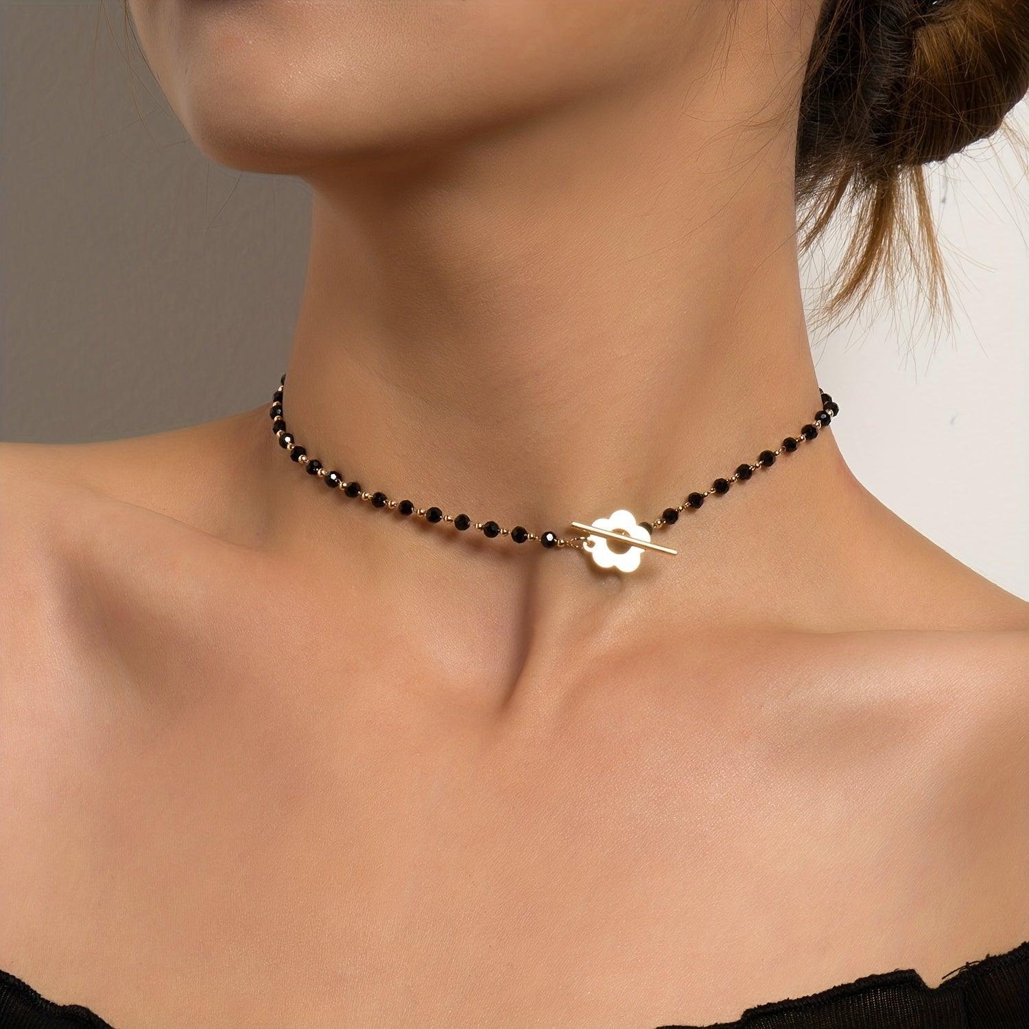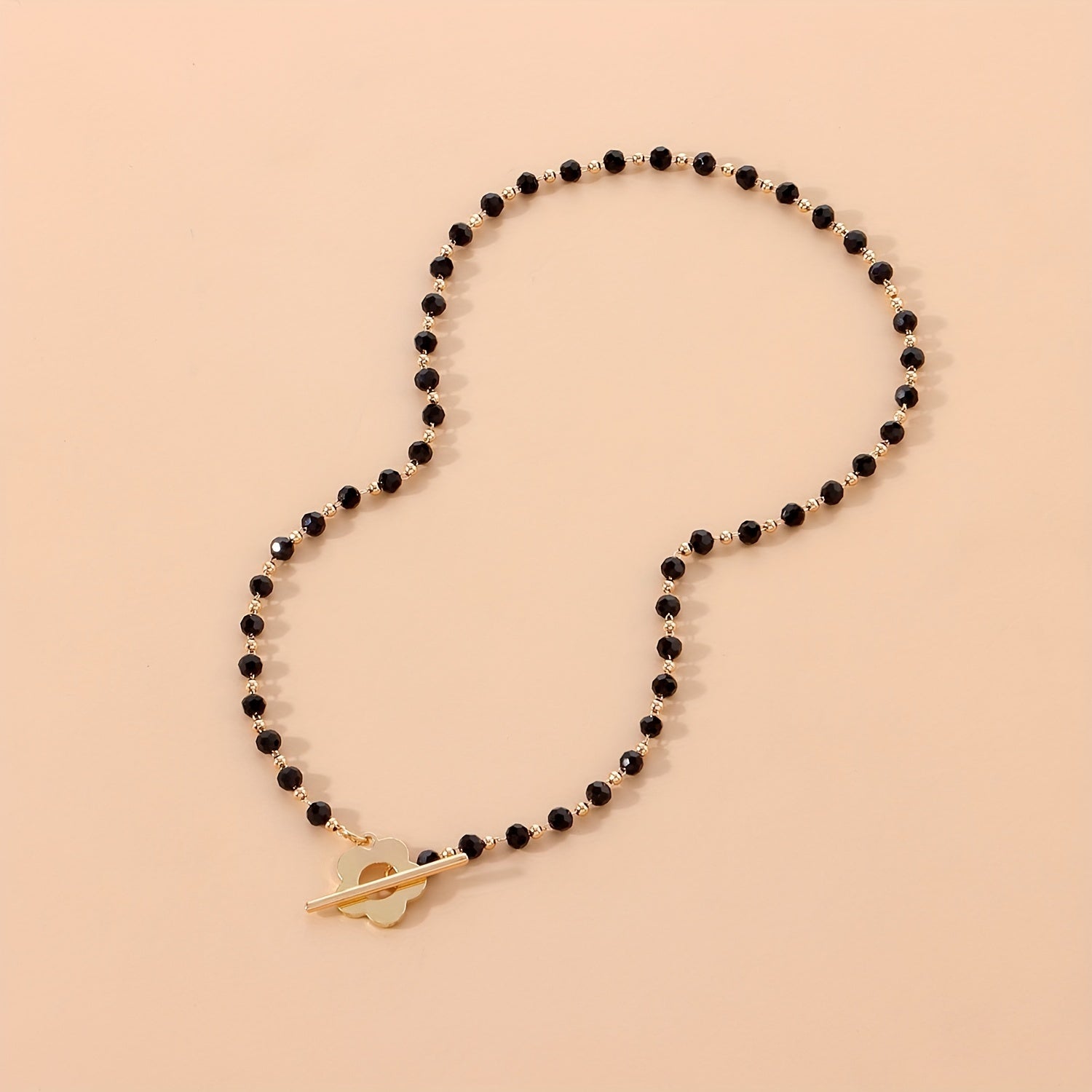 Add a touch of elegance to your outfit with this stunning flower OT buckle crystal glass bead chain.