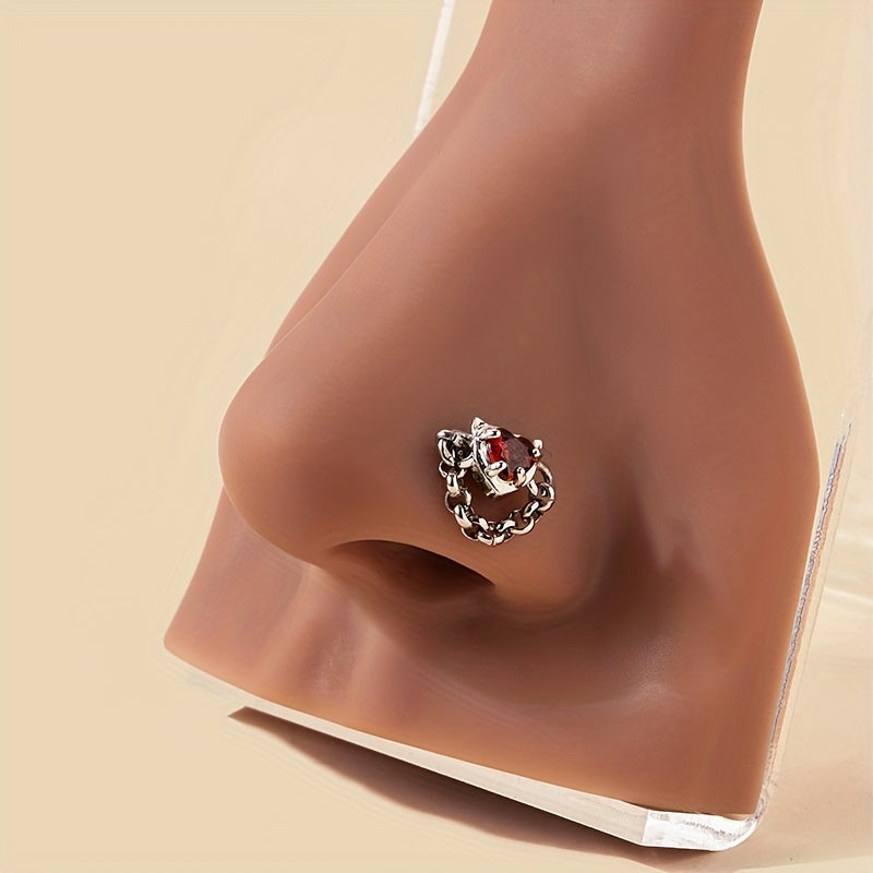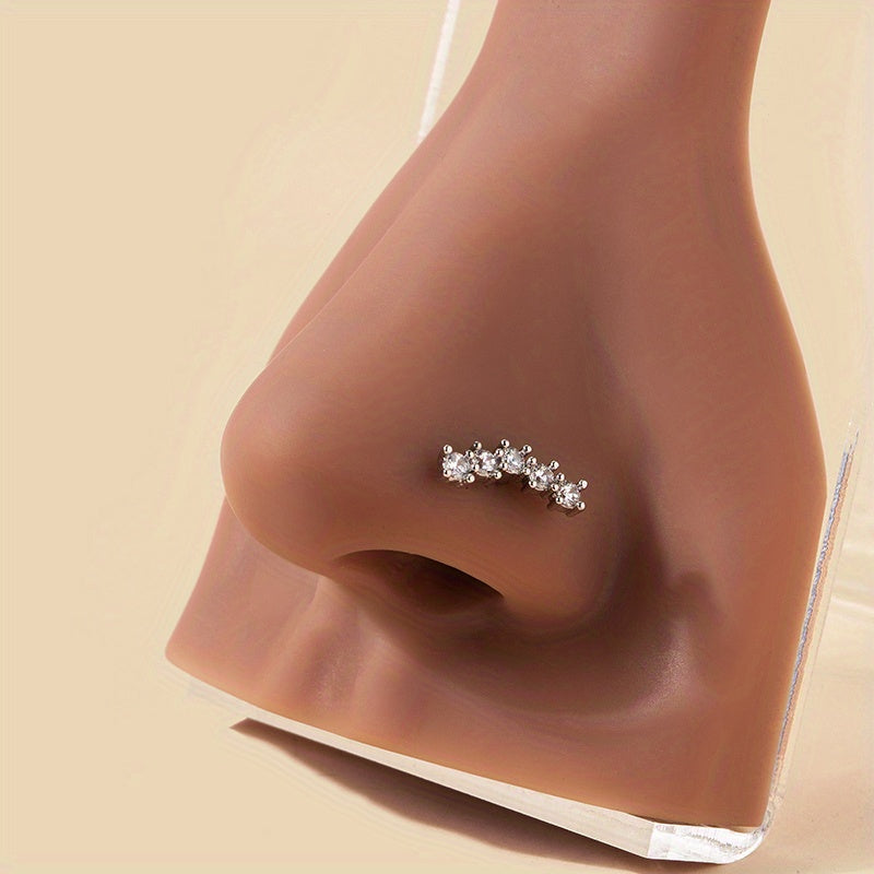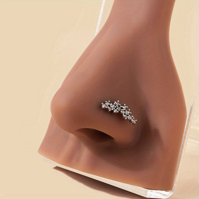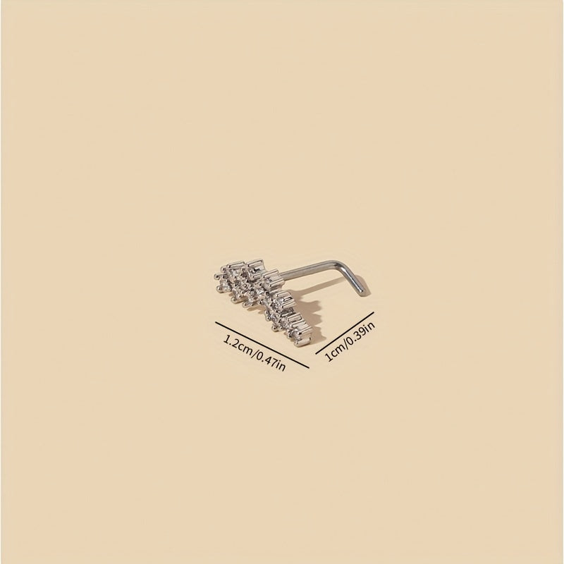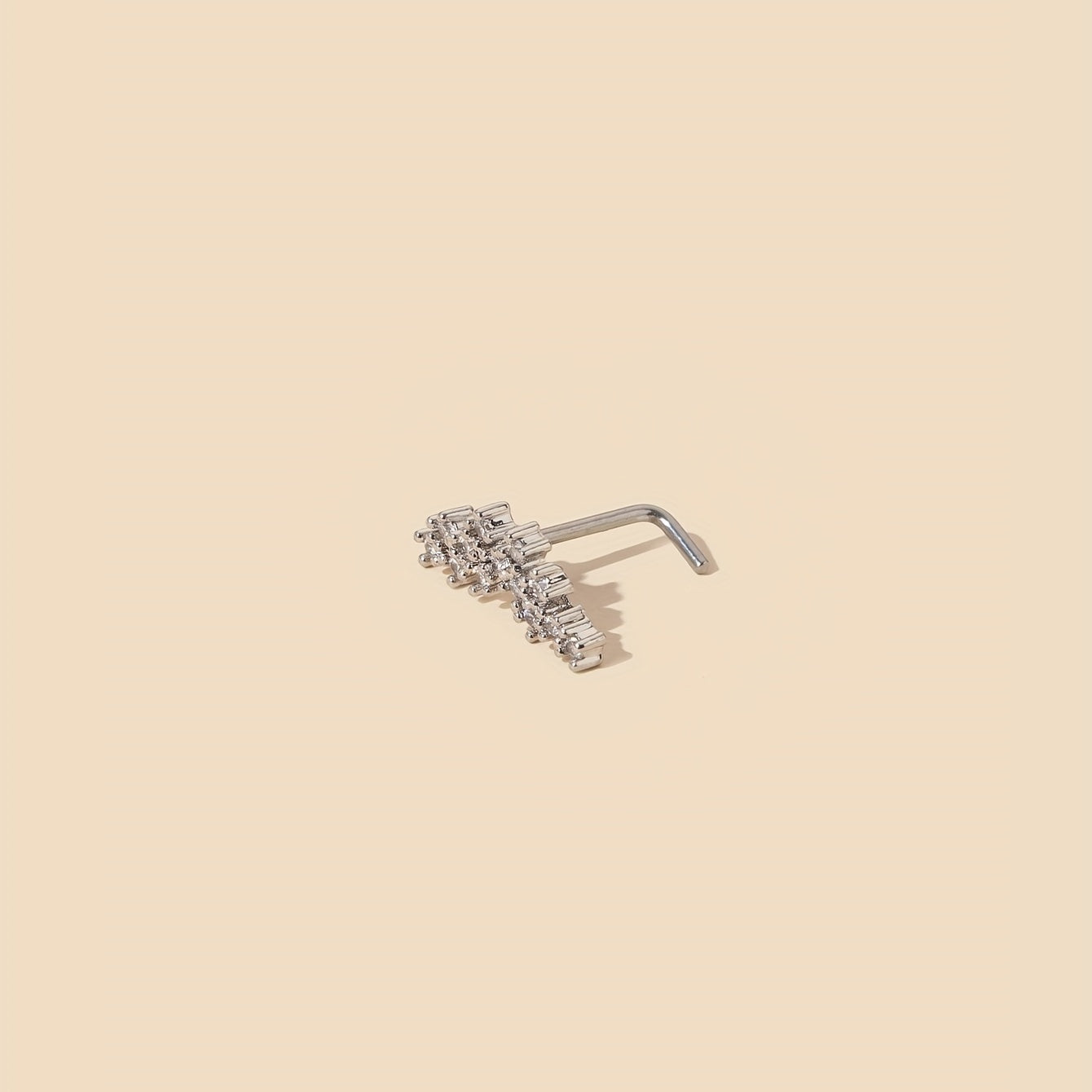 Enhance your nose piercing with this elegant L-shaped nose nail featuring sparkling zircon inlays. Perfect accessory for a stylish look.
