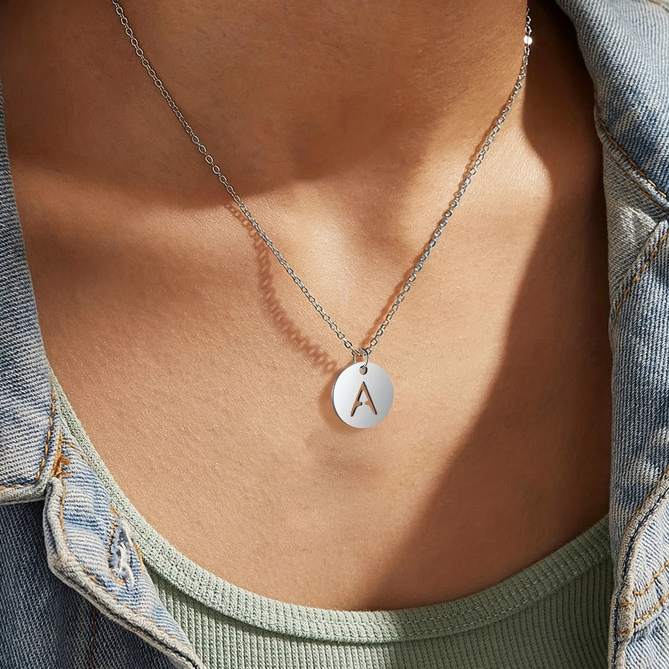 This stylish pendant necklace features initial letters that can be personalized to suit your style. Made of durable stainless steel, it is a perfect accessory for everyday wear.