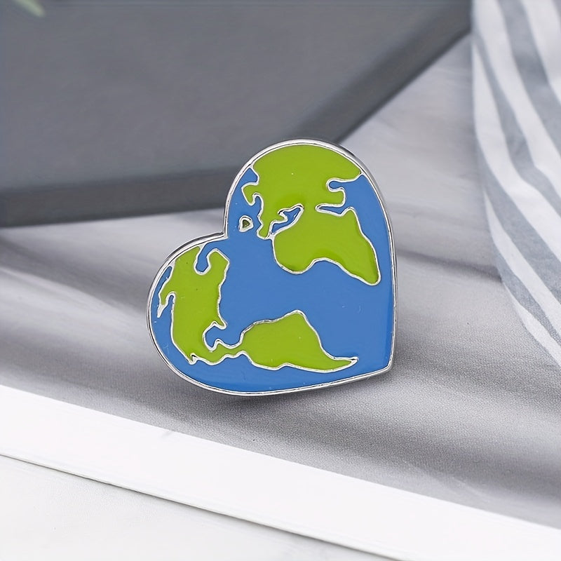 Show your love for our planet with this adorable enamel brooch featuring a heart-shaped world map design. Made of high-quality metal and finished with vibrant green enamel, this brooch is a perfect accessory for any nature lover.