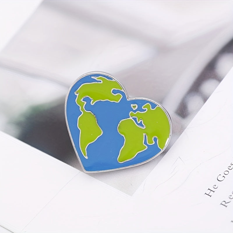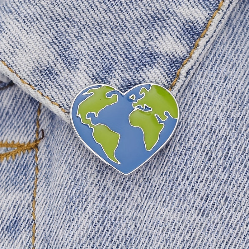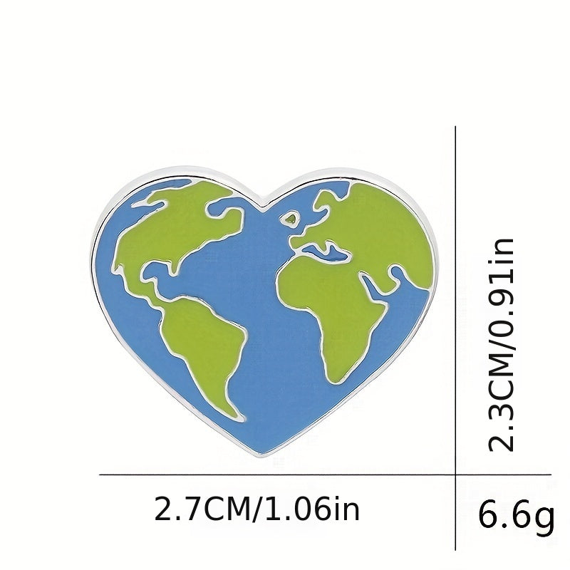 World Map Love Heart Earth Brooch Enamel Metal Green Earth Brooch Pi