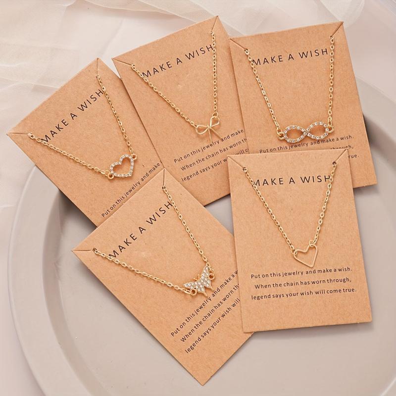 Elevate your style with this set of 5 pendant necklaces for women featuring Y2K and heart designs with rhinestone accents. Made of zinc alloy, these necklaces are perfect for daily wear and gifting.