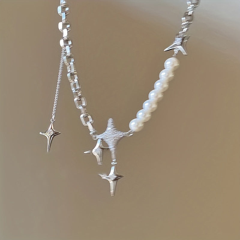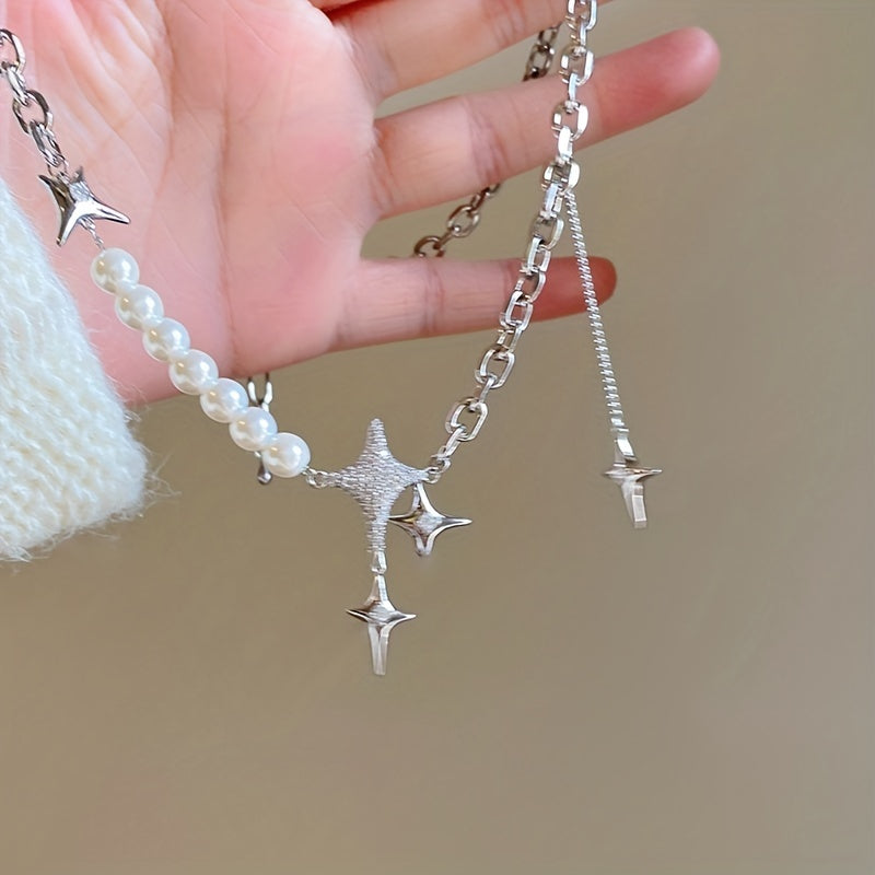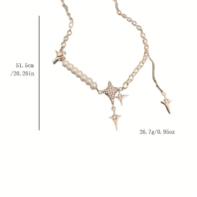 Add some sparkle to your outfit with this Y2K style necklace featuring star and faux pearl decorations. Perfect for parties and events!