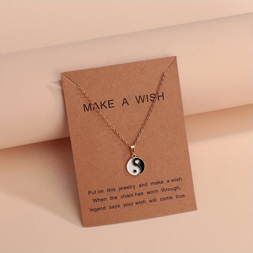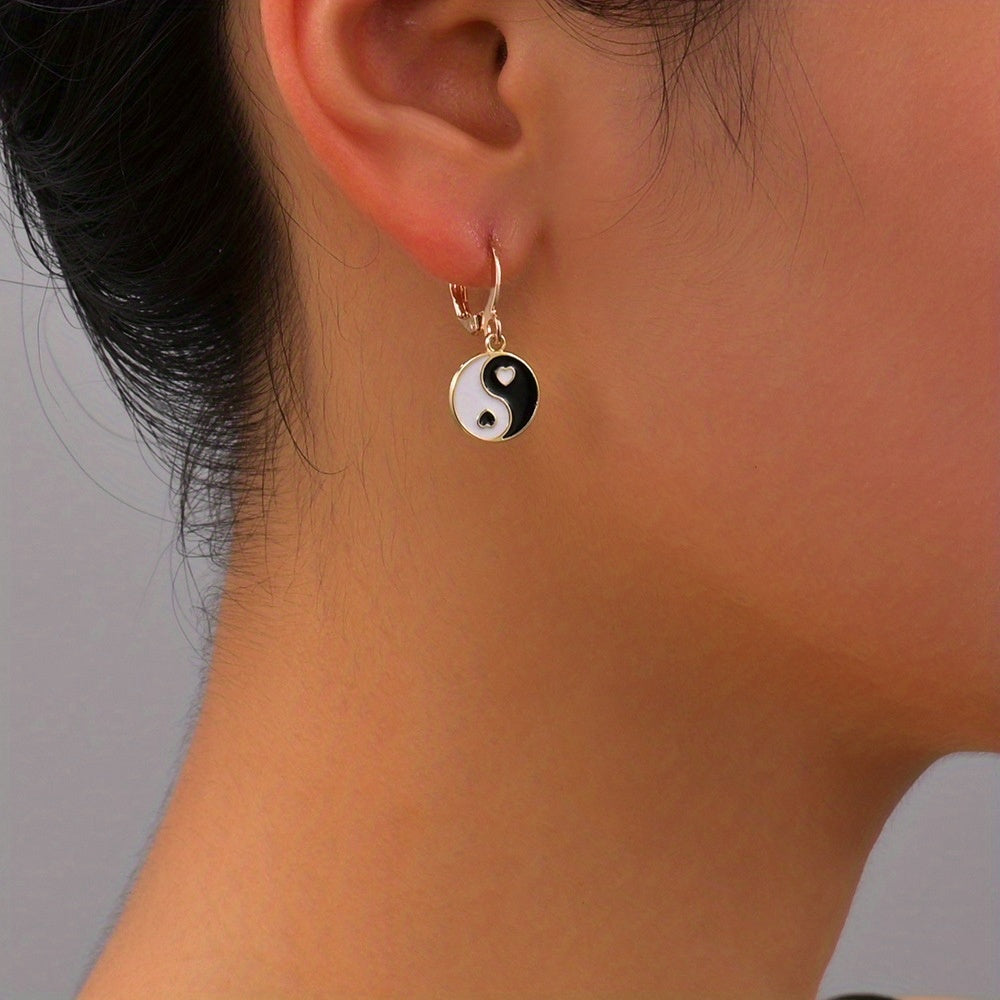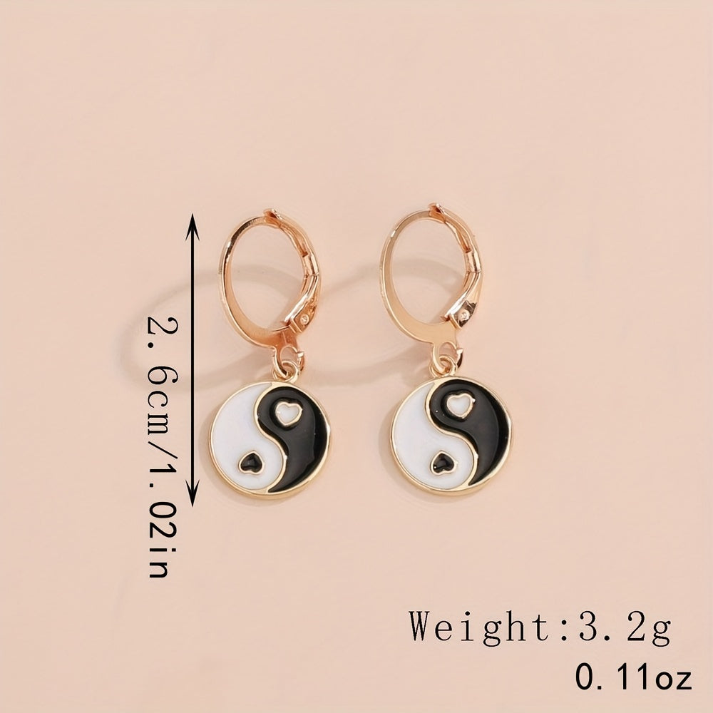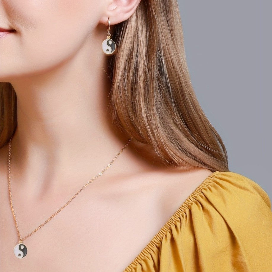 This set includes 3pcs earrings and a matching necklace with a yin yang pattern, perfect for daily outfits. Symbolizes peace and health, ideal for gifting to family members for a peaceful holiday season.