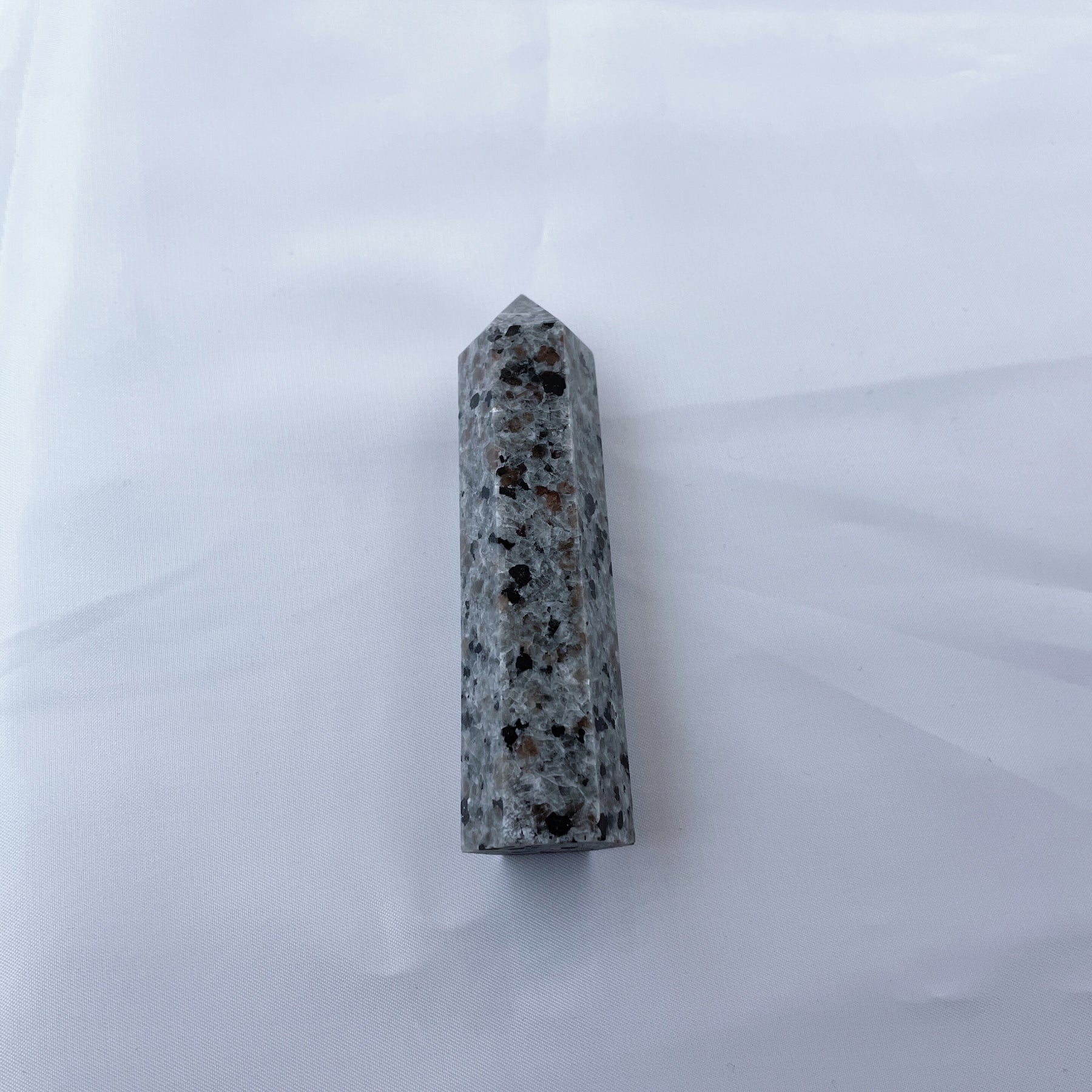 Add a touch of natural beauty to your space with this Yooperlite crystal tower. It is made of Syenite rich in fluorescent Sodalite crystals that glow under UV light, perfect for Reiki healing.