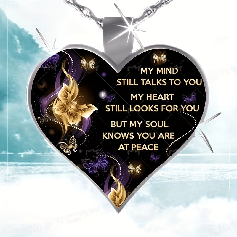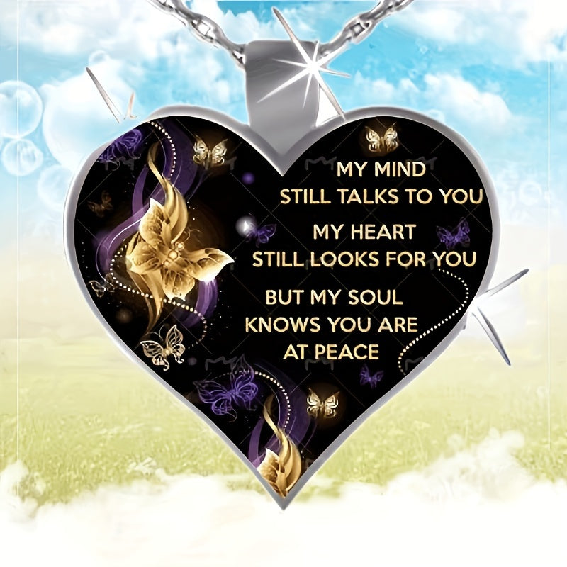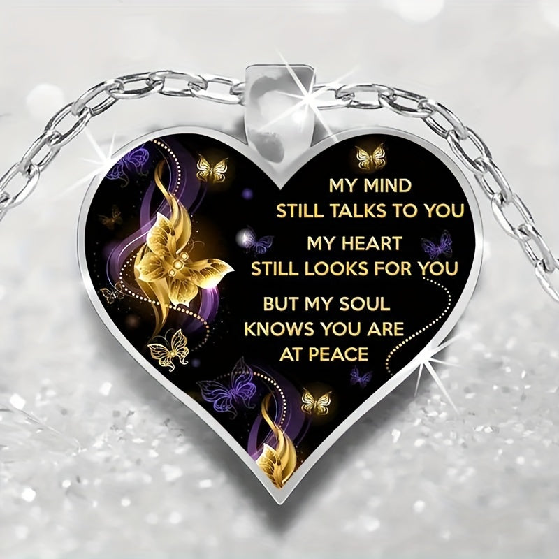 This creative heart butterfly pendant necklace is a stylish and generous gift for any occasion. Made of zinc alloy, it features a unique text design. Perfect for Thanksgiving, Christmas, birthdays, or any special event.
