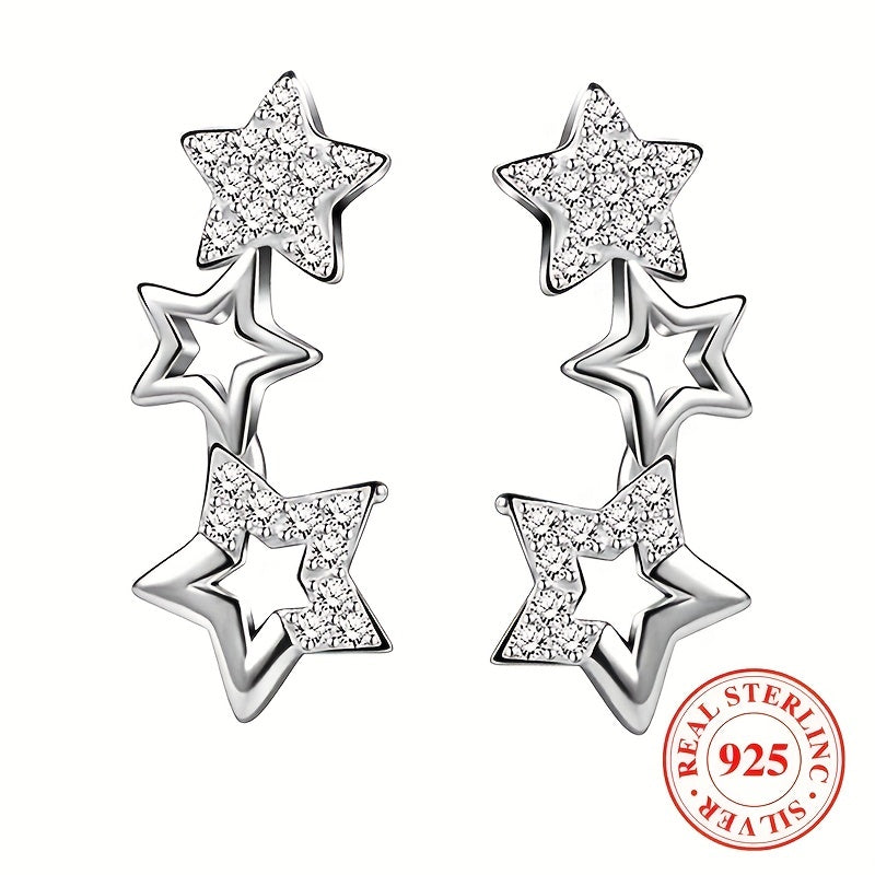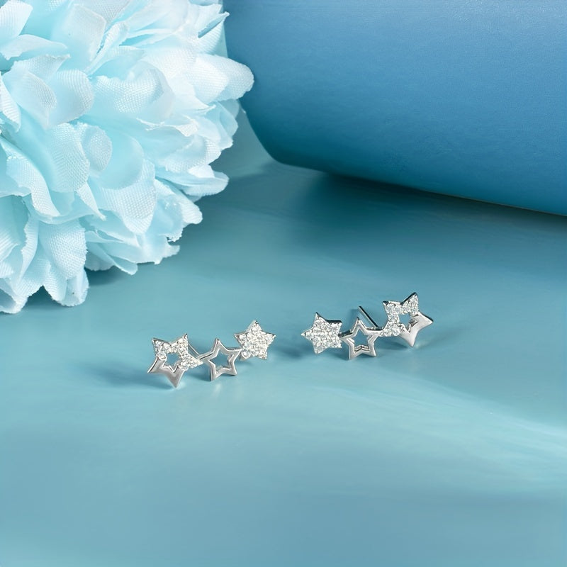 Zircon 925 Silver Plated Decor Stud Earrings for Women