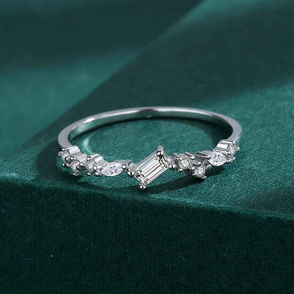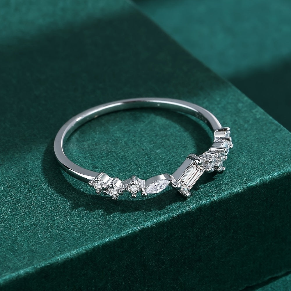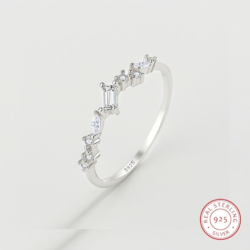 This stunning 925 silver ring features an irregular shape design adorned with zircon stones. A perfect birthday gift for women who love unique jewelry.