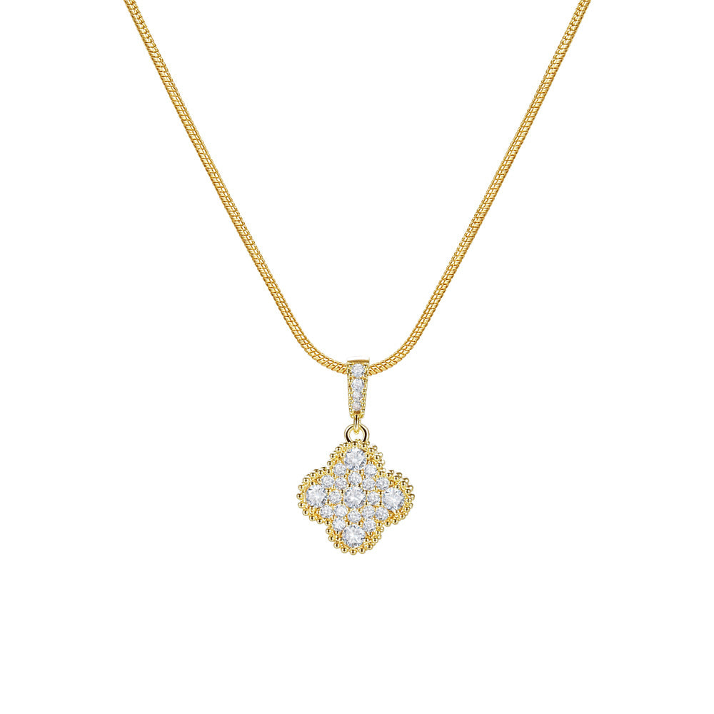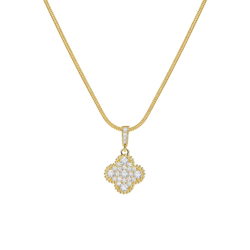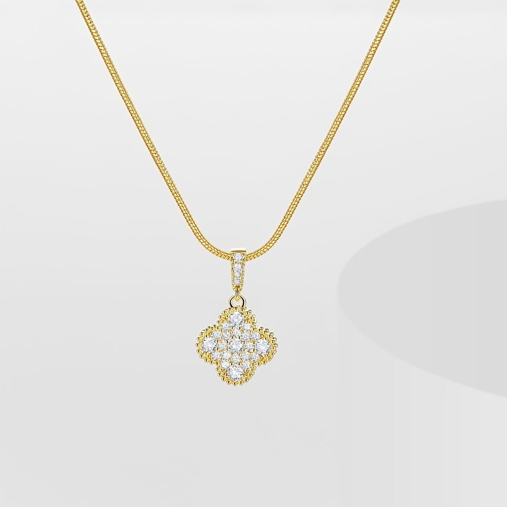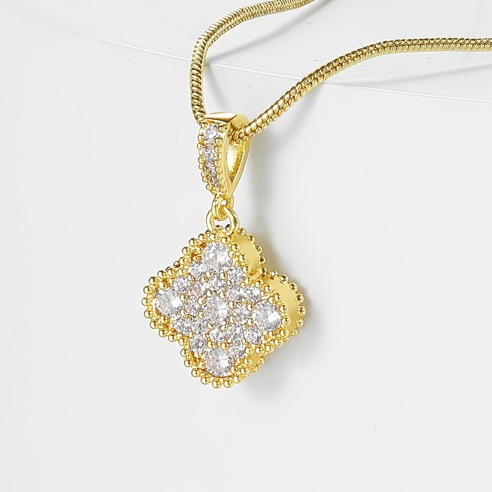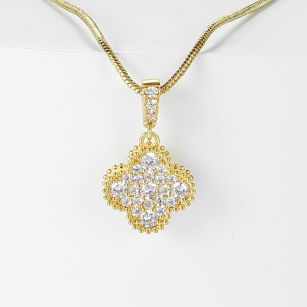 Elegant flower shape pendant necklace with sparkling zircon details. This necklace is adjustable to suit your style and can be worn for any occasion.