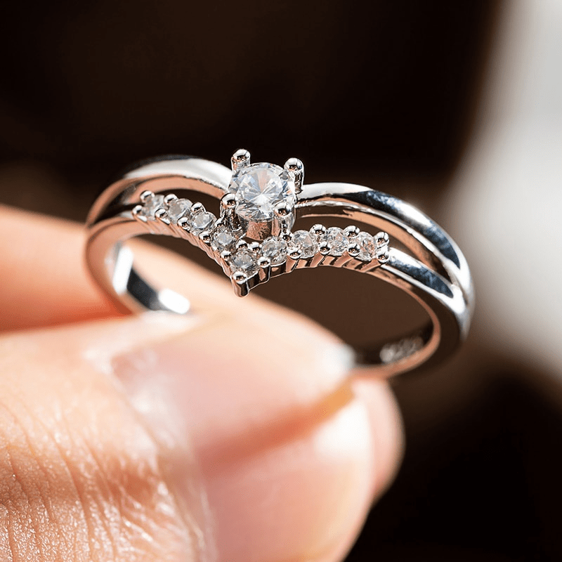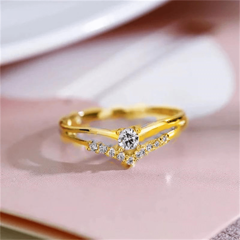 This stylish finger ring features a hollow out design with zircon inlays, crafted from high-quality alloy.