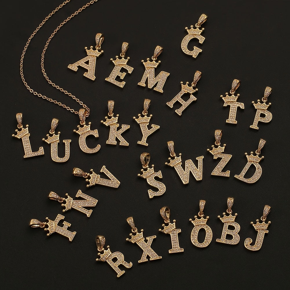 Elegant necklace featuring 26 English letter pendants inlaid with zircon. Perfect for women and girls.