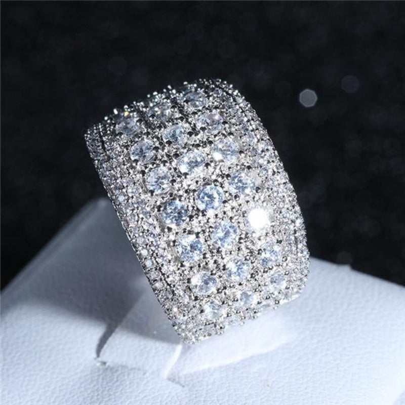 Zircon Inlaid Band Ring for Women Wedding Engagement Party