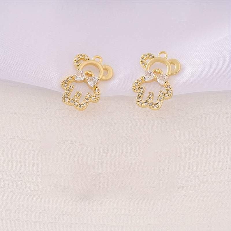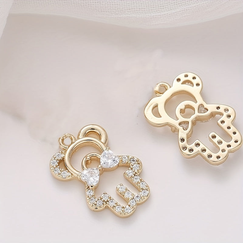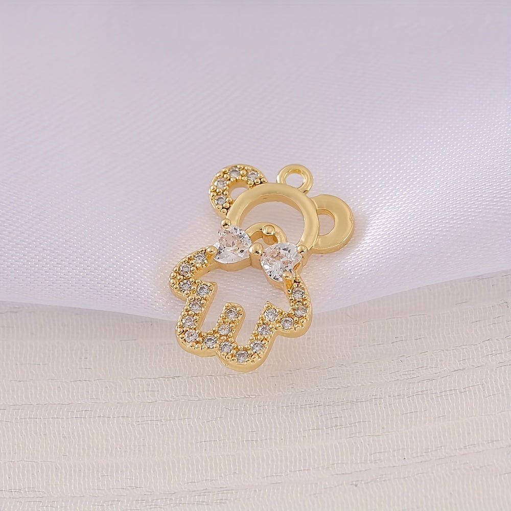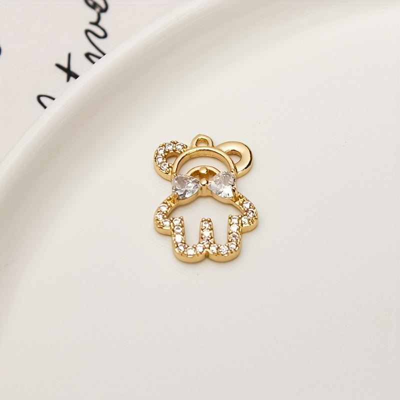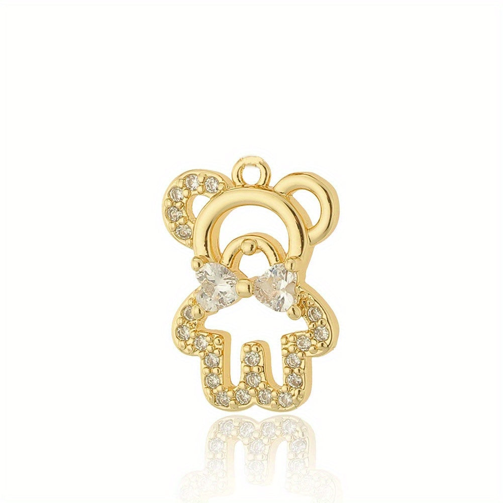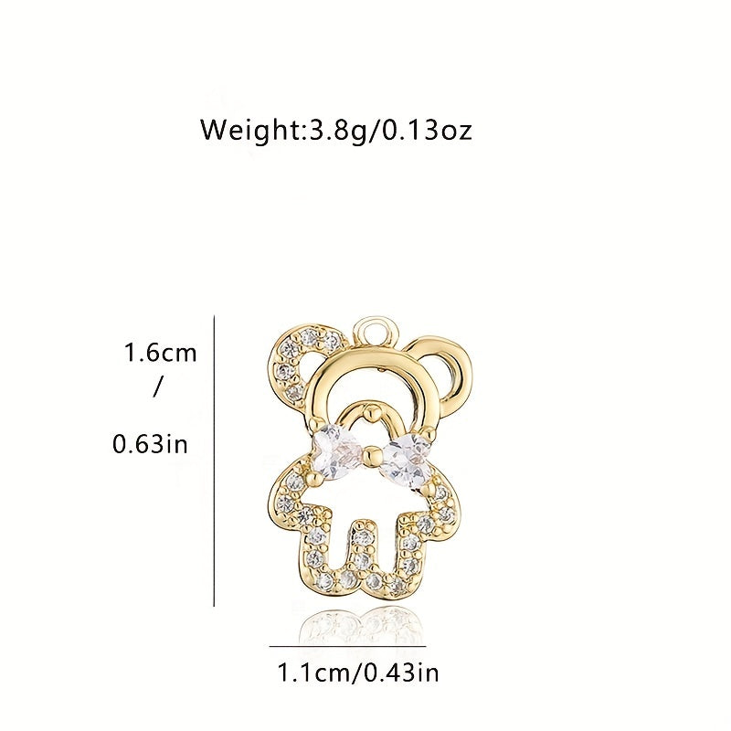 Adorable hollow little bear pendant with zircon inlay and bow tie design, perfect for necklace and bracelet DIY projects.