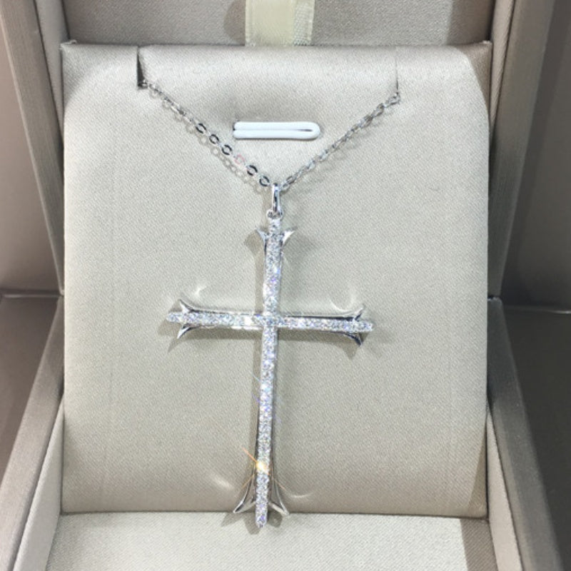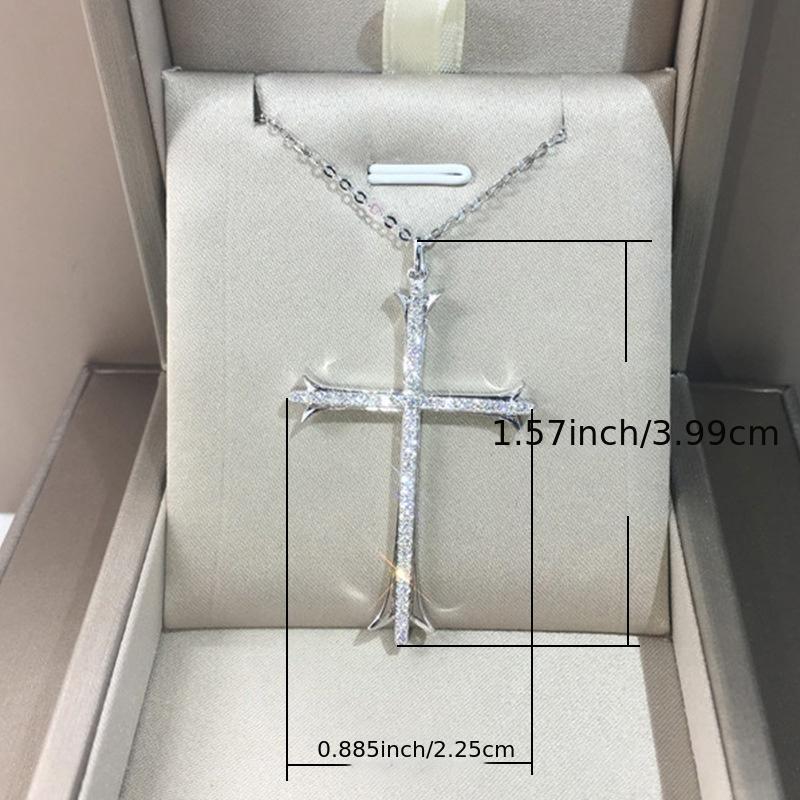 This stunning cross pendant necklace is made of 925 silver plated metal and features inlaid zircon for added sparkle. Perfect for women and girls, it makes a beautiful gift for engagements, weddings, or any special occasion.