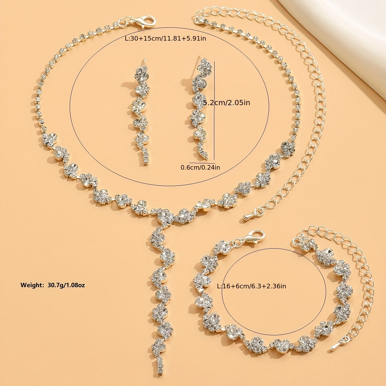 Add a touch of sparkle to your look with this stunning Zircon jewelry set. Perfect for parties, weddings, and engagements, this set includes a necklace, earrings, and bracelet.