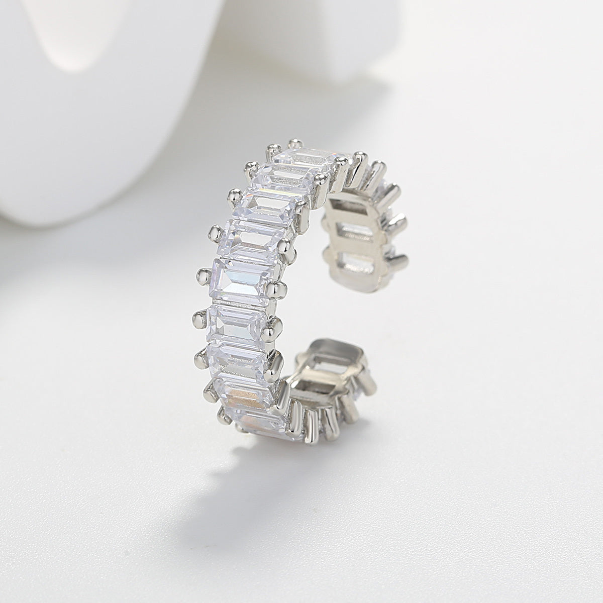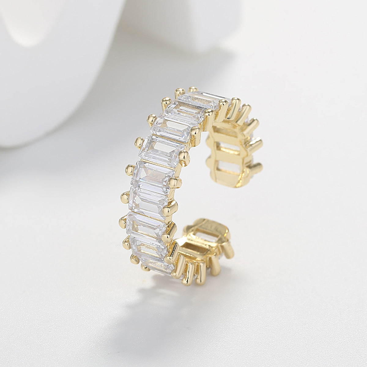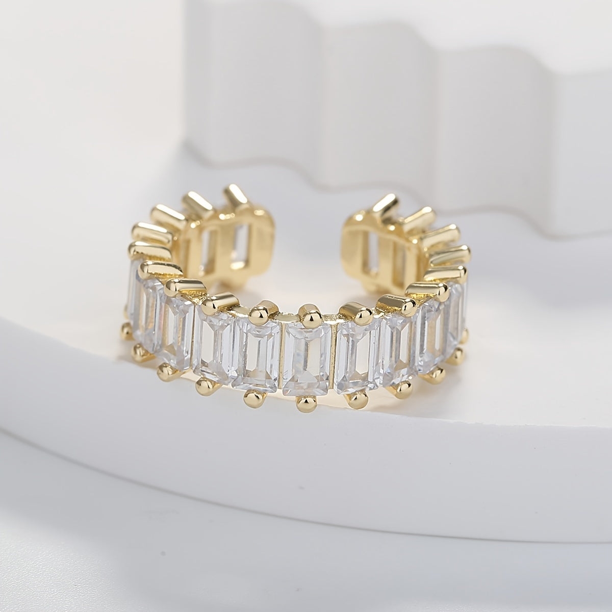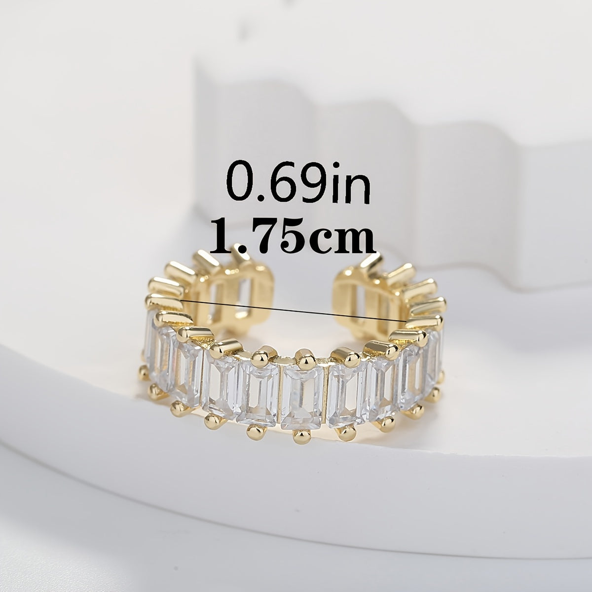 This stunning rectangular zircon ring is perfect for weddings and engagements. It is adjustable to fit various finger sizes and is plated with 14K gold for a luxurious look.