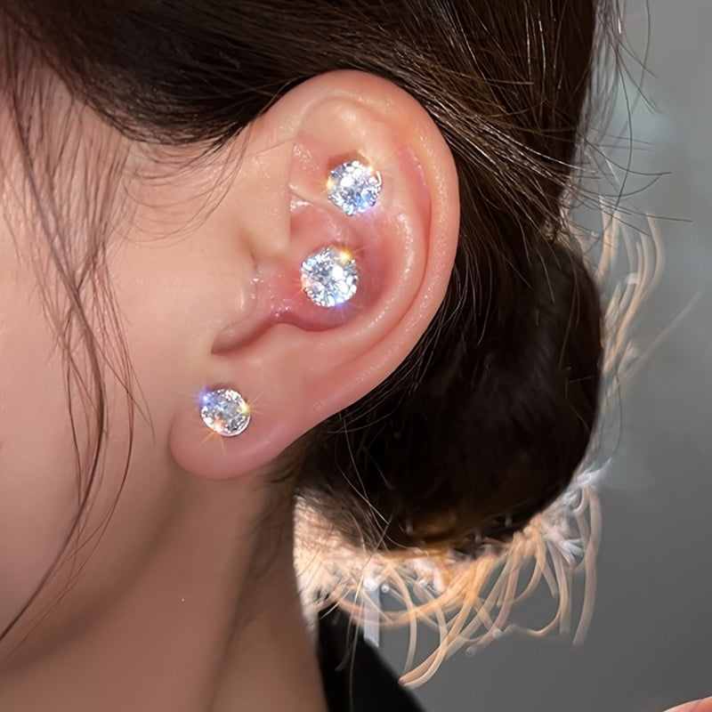 Enhance your everyday look with this set of 3 magnetic zircon earrings, perfect for casual wear or special occasions.