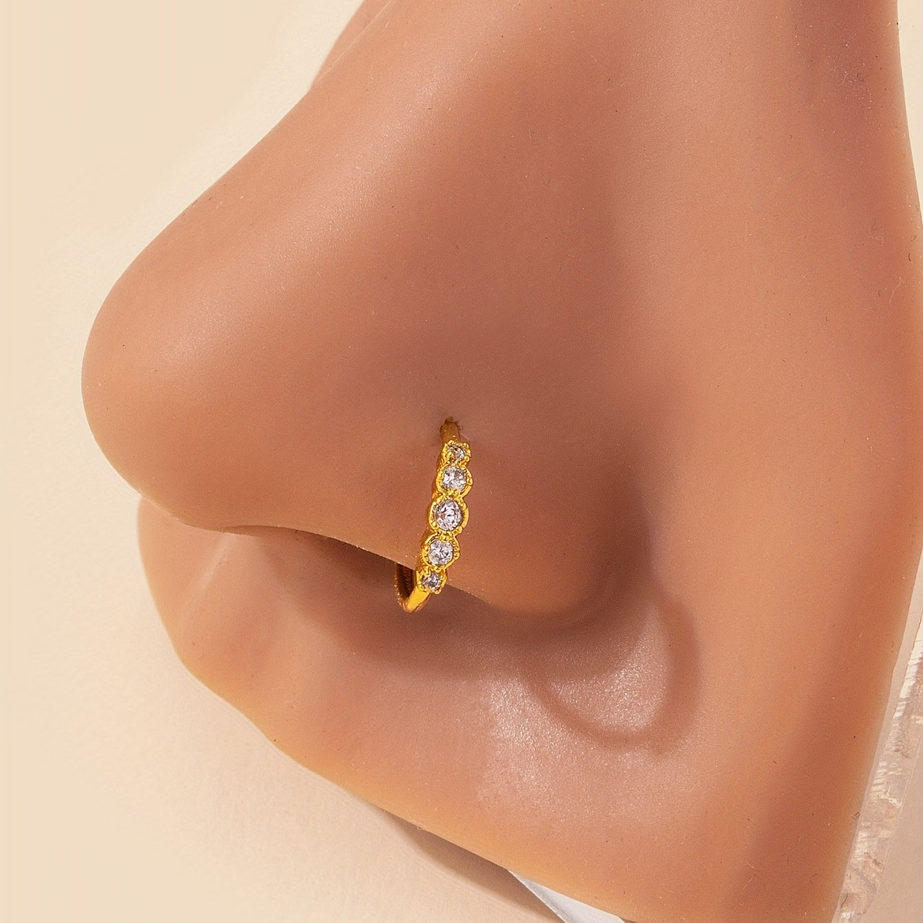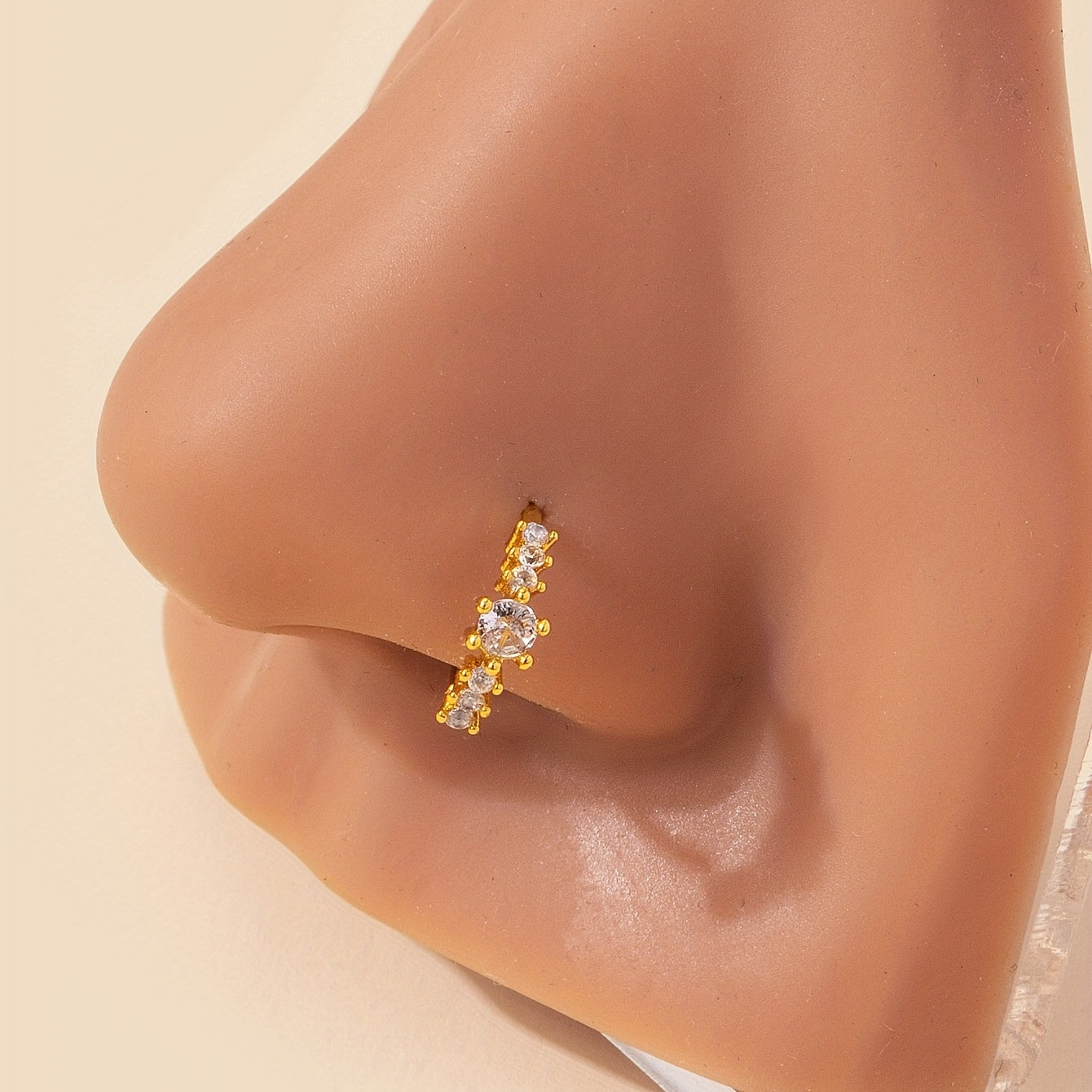 Add a touch of elegance with this inlaid zircon nose ring. Perfect for women and girls, it adds a sparkly charm to your look.