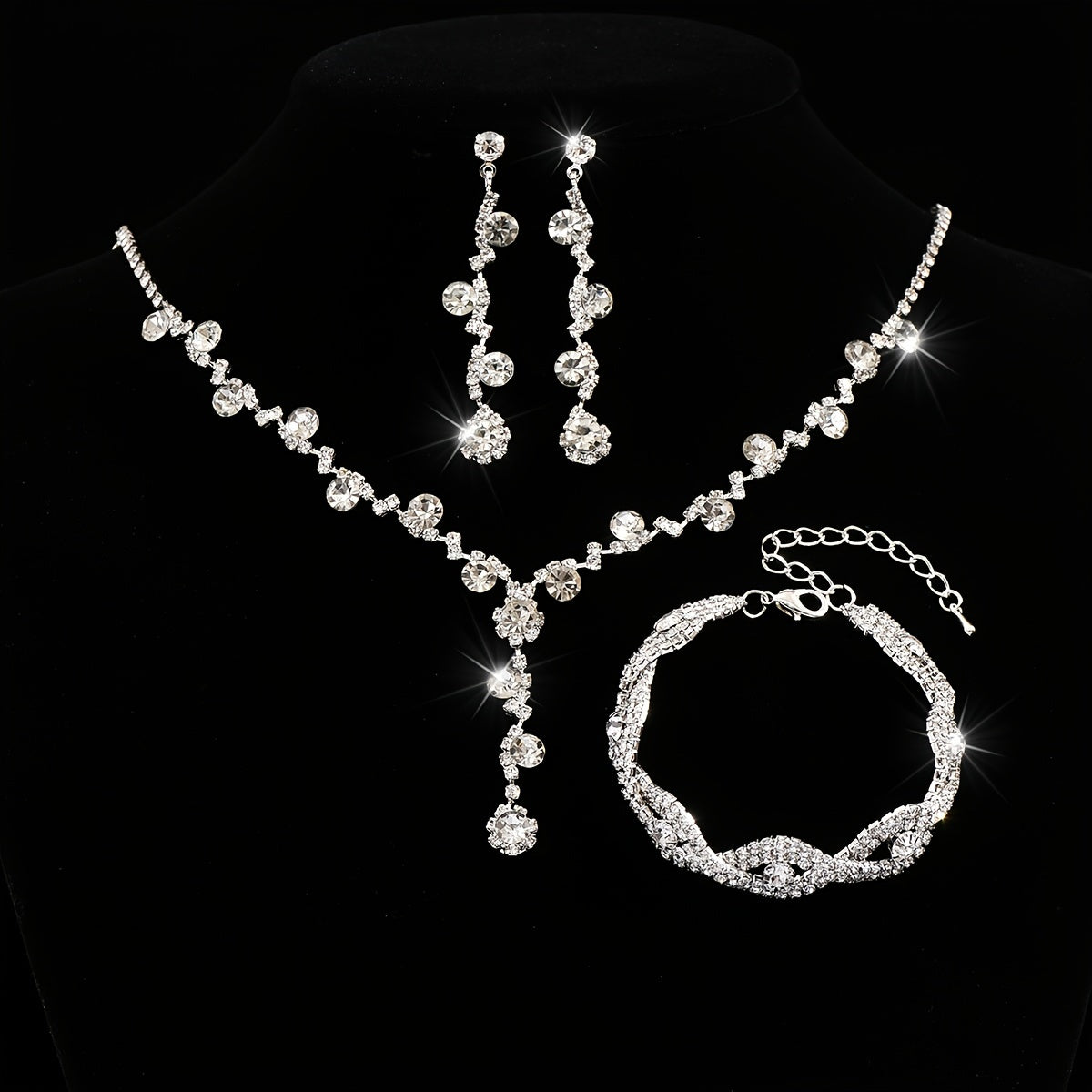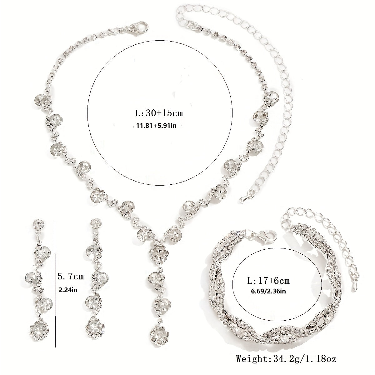 Elegant rhinestone chain jewelry set with flower-shaped zircon pendant. Perfect for brides and bridesmaids.