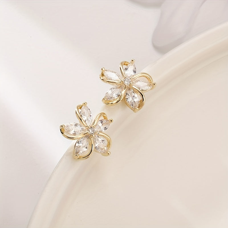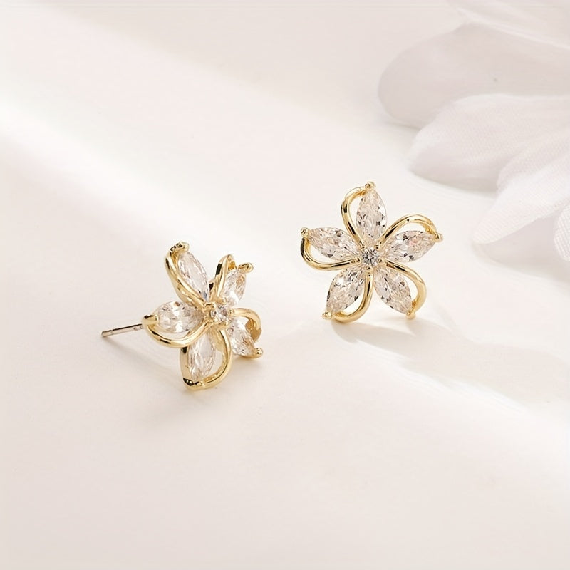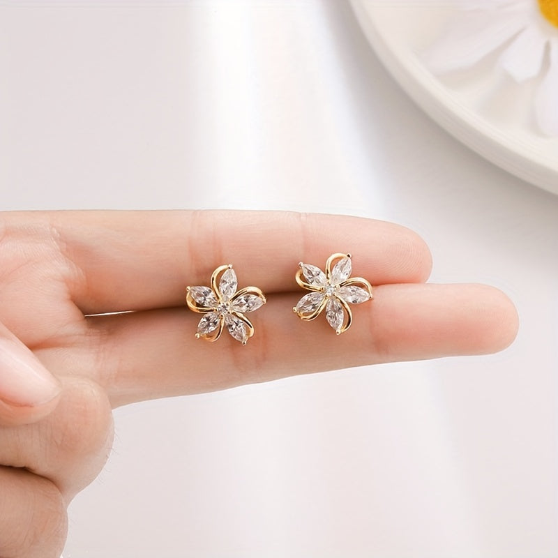 Add a touch of elegance to your daily look with these hollow flower earrings featuring zircon petal decoration. Made of copper with silver plating, they are perfect for casual wear.