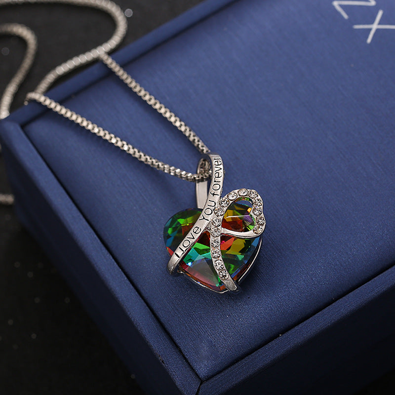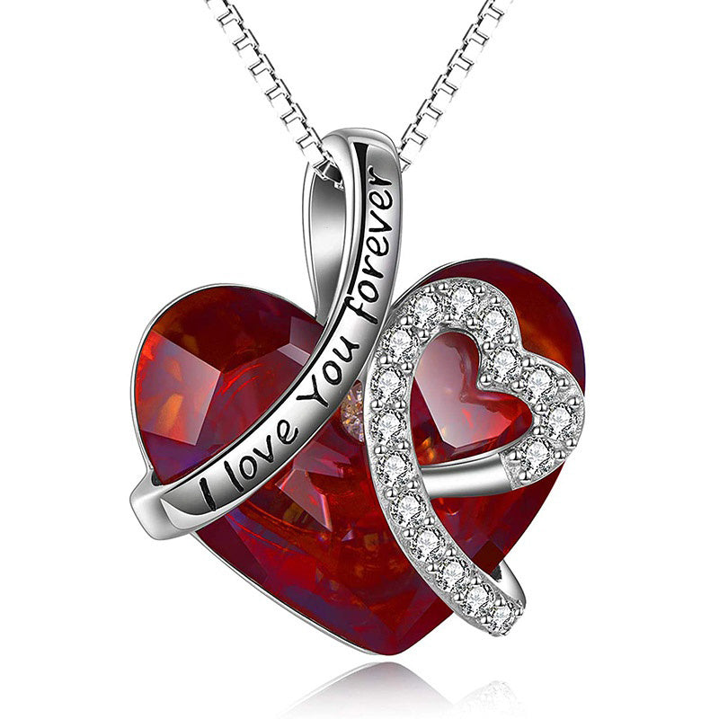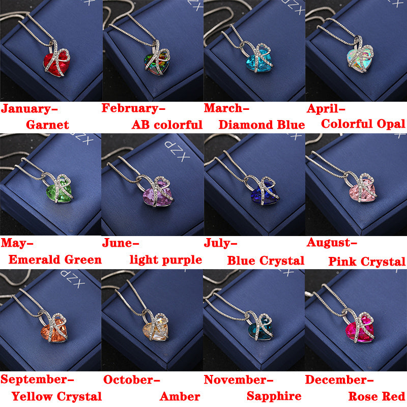 12 Months Birthstone Heart Pendant Necklace for Girls