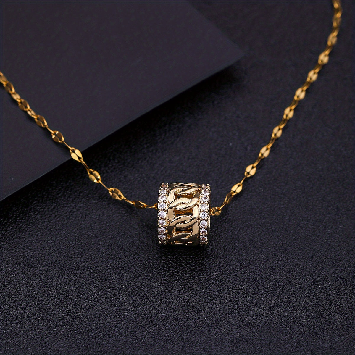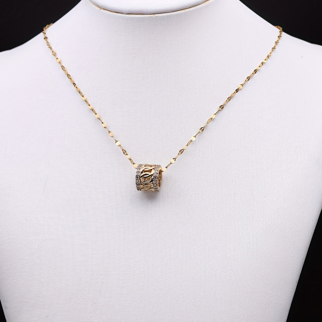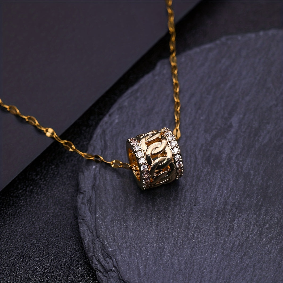 Add a touch of elegance with this cylinder shaped pendant necklace featuring 18K golden plating and shimmering zircon stones.