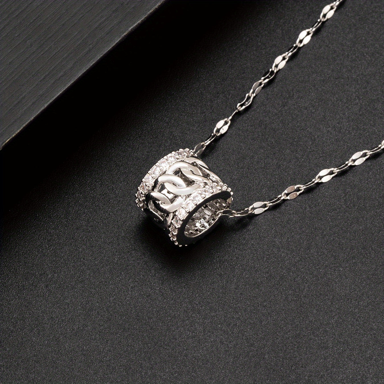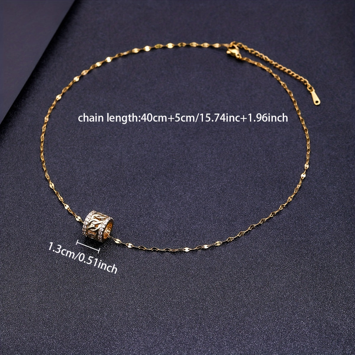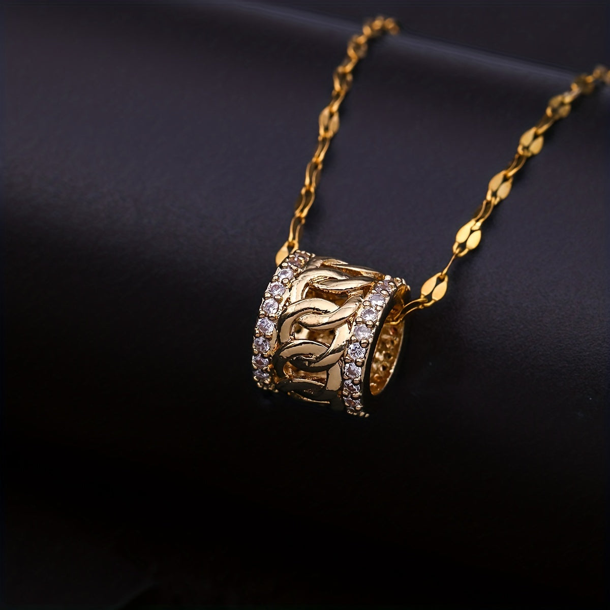 Add a touch of elegance with this cylinder shaped pendant necklace featuring 18K golden plating and shimmering zircon stones.