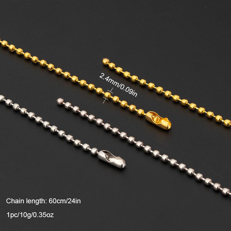 This 24-inch stainless steel beaded necklace chain is ideal for DIY crafts, jewelry making, and as a military dog tag necklace for men. It is sturdy and versatile, perfect for various projects.