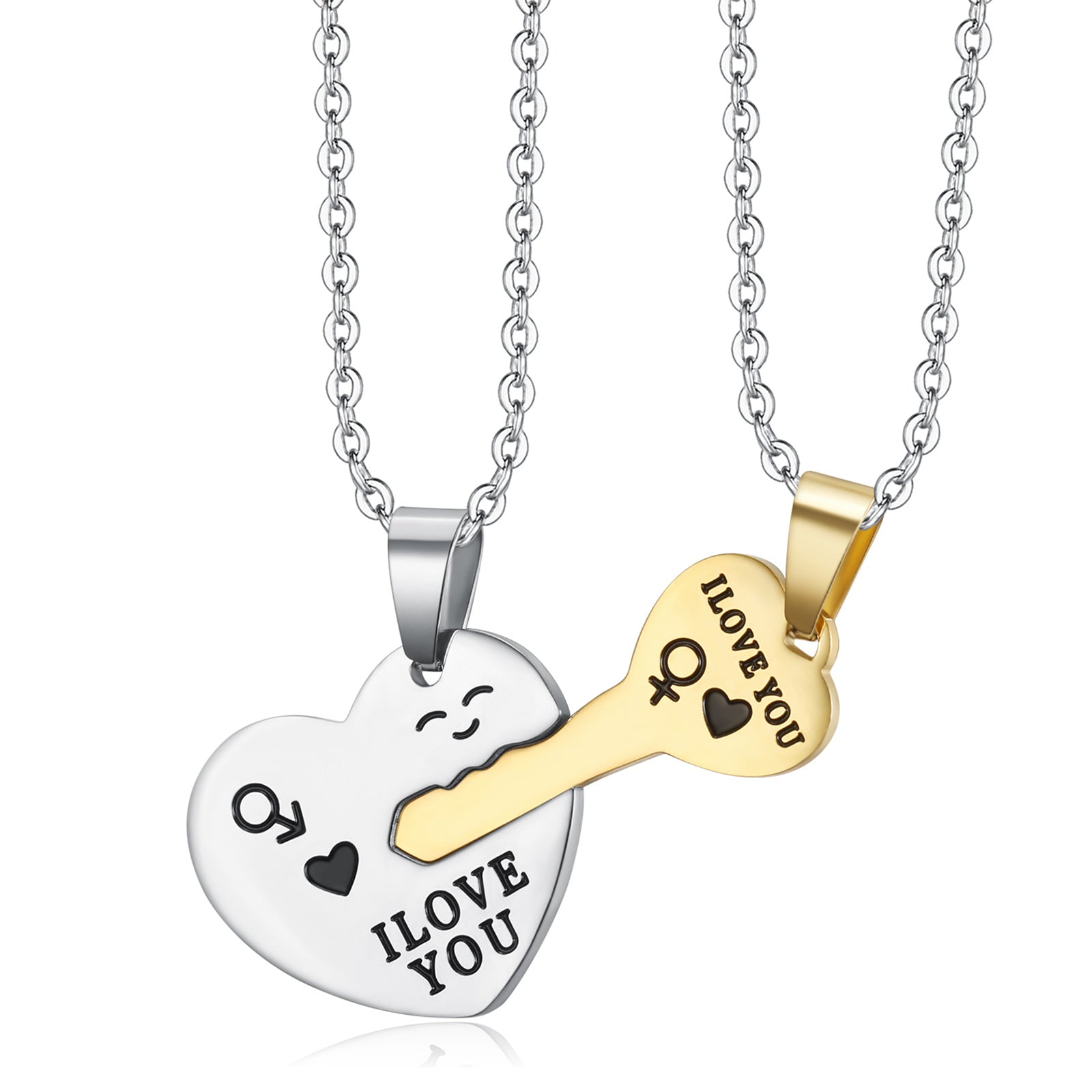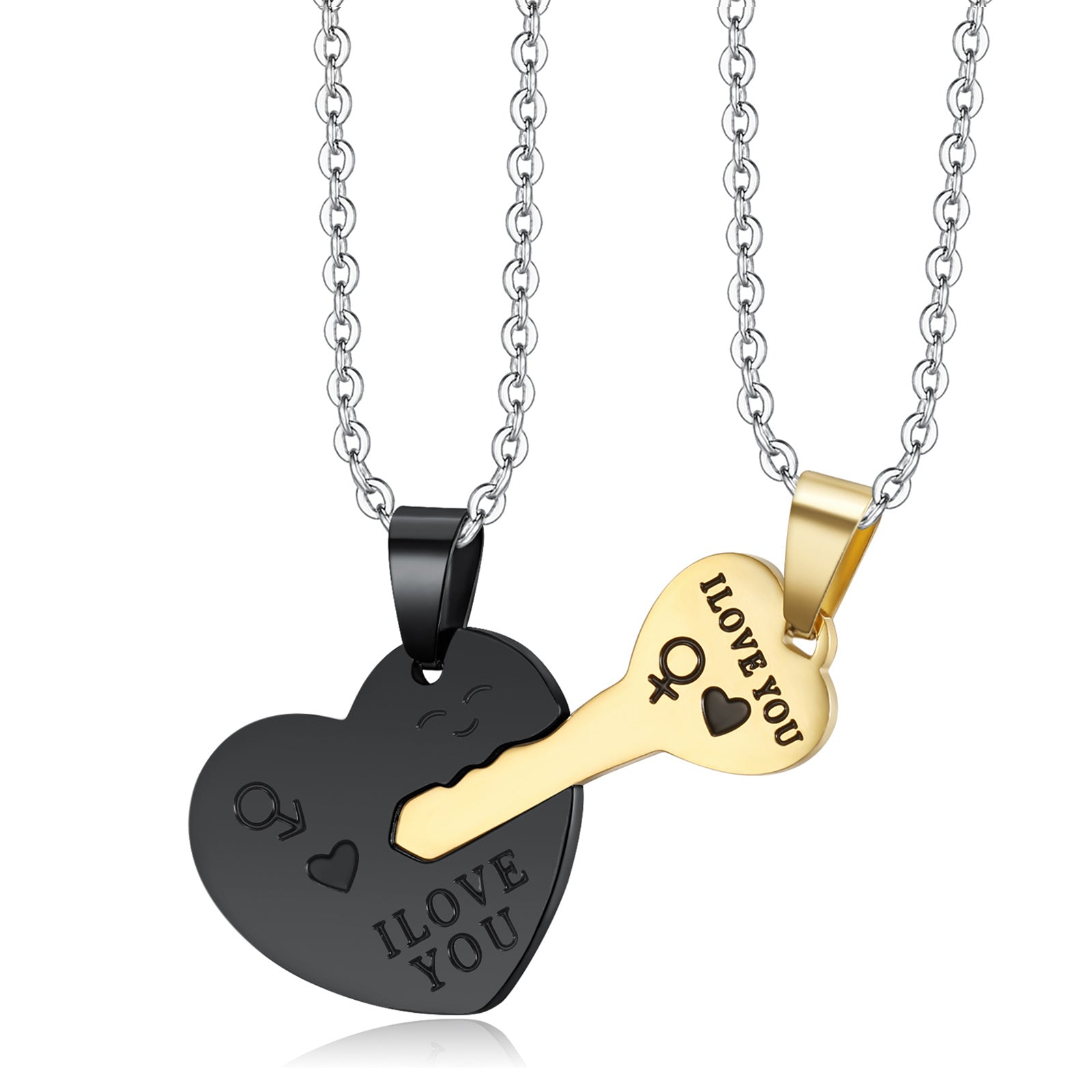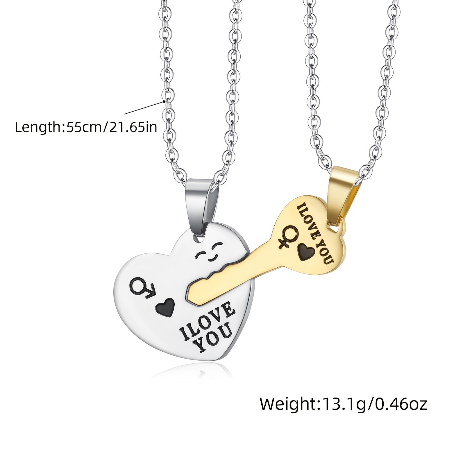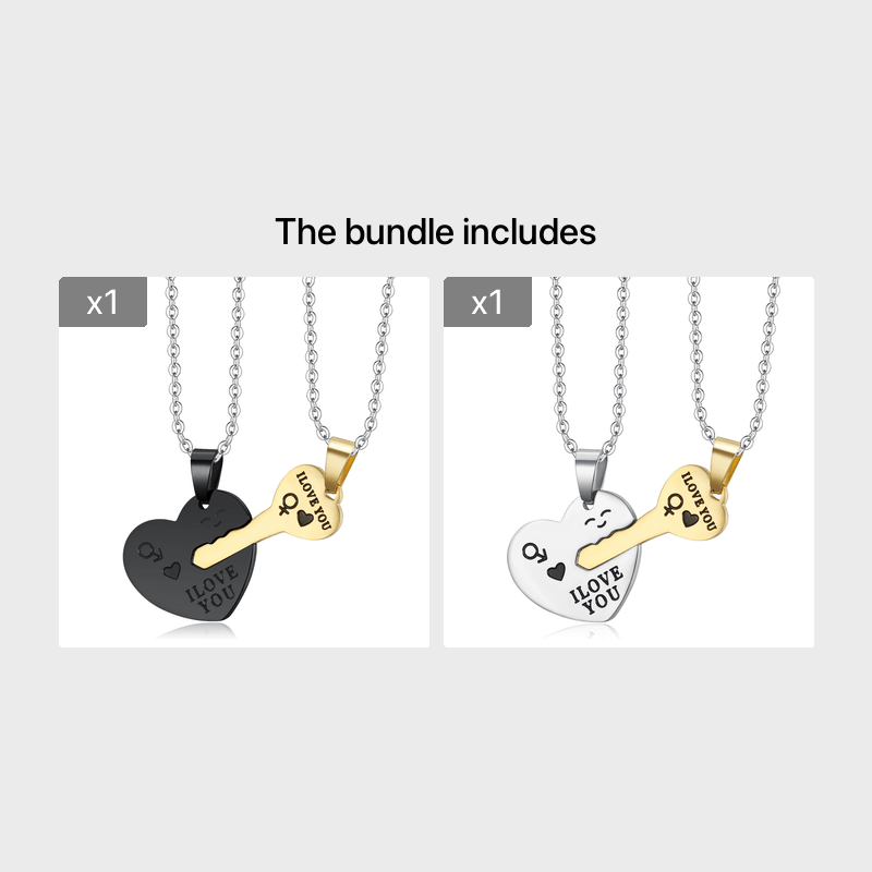 This set includes 2 heart-shaped key pendant necklaces made of stainless steel. Perfect as a gift for couples or loved ones.