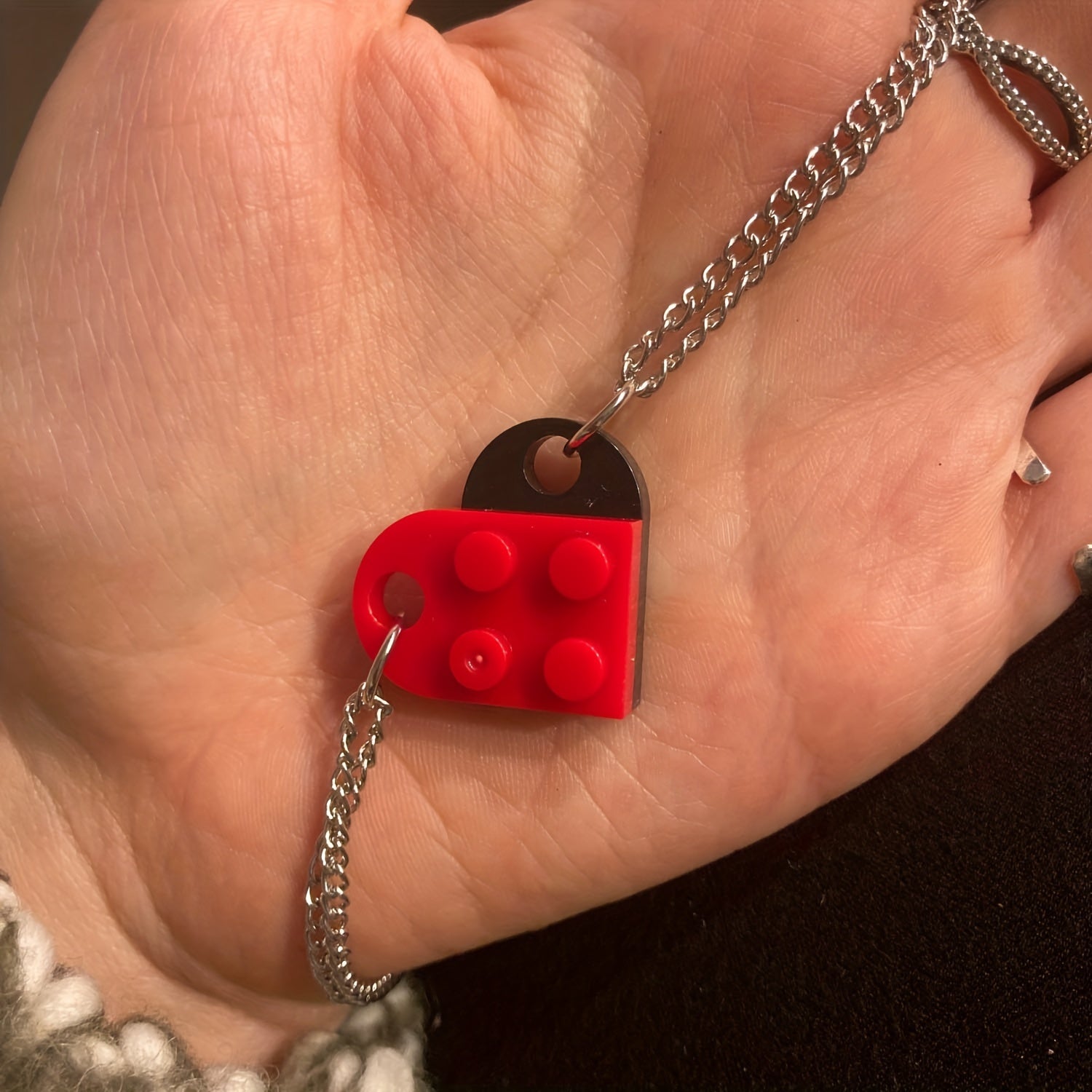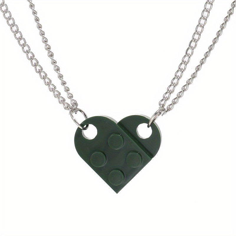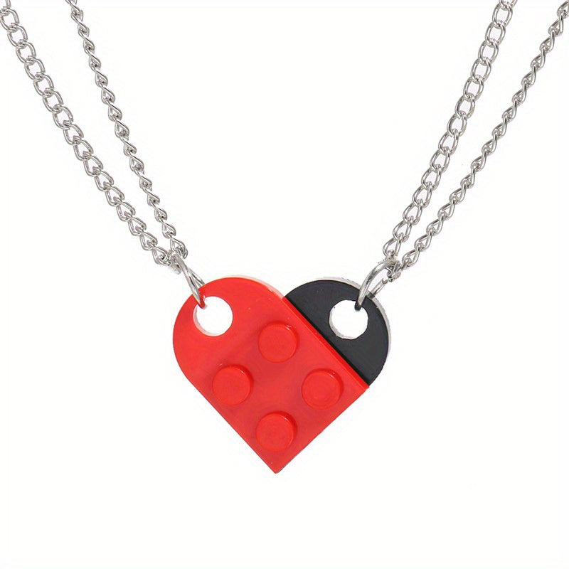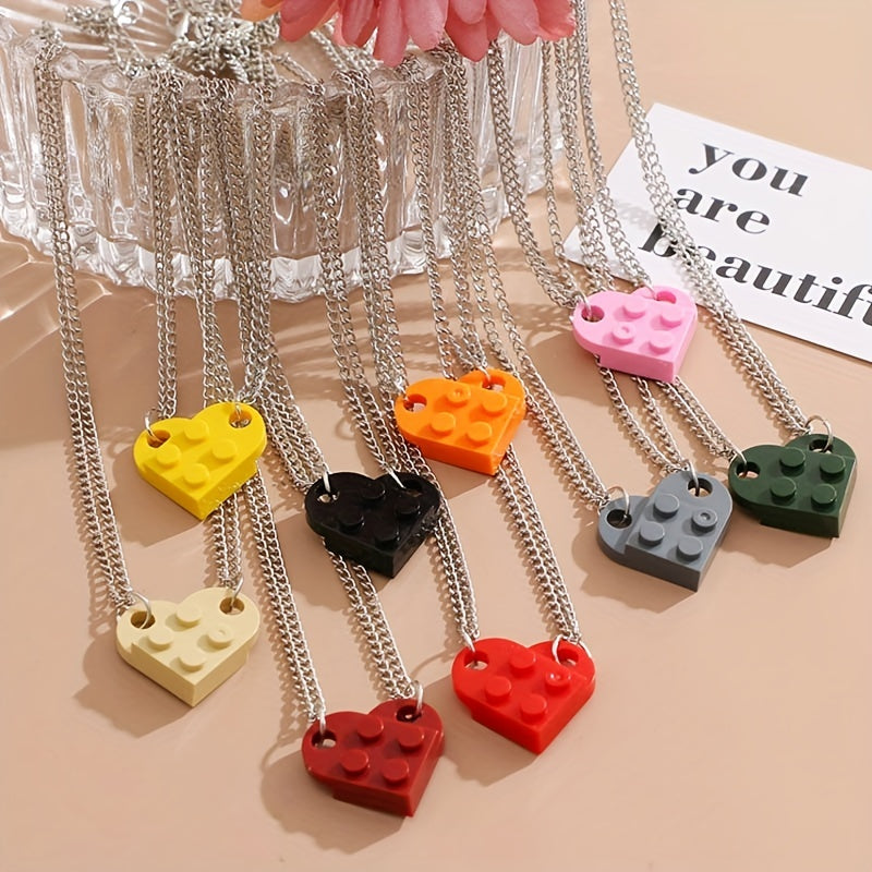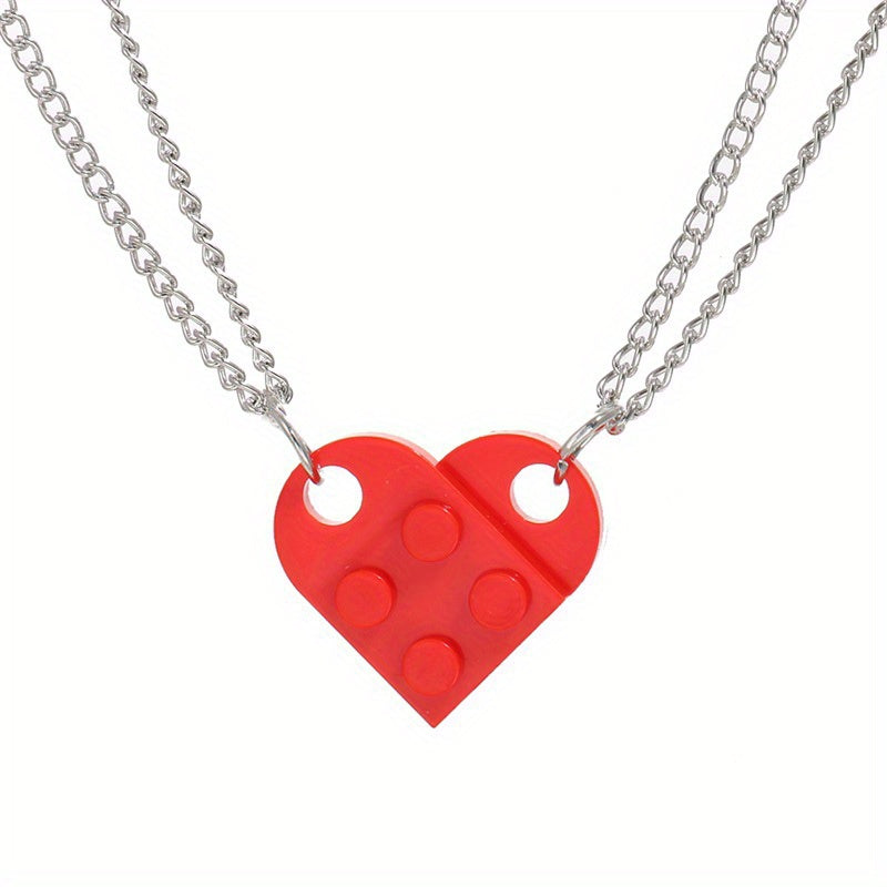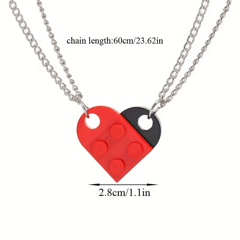 This pair of necklaces features heart building block pendants, perfect for couples or friends. The design is versatile for both men and women.