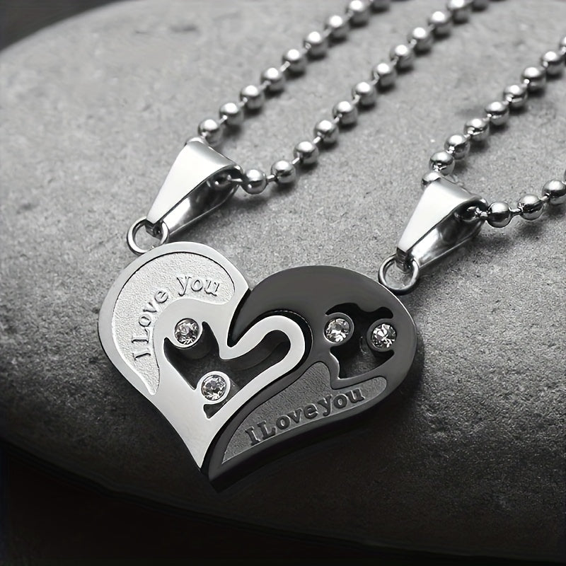 Show your love with this stainless steel necklace set featuring a heart design. Perfect for couples.