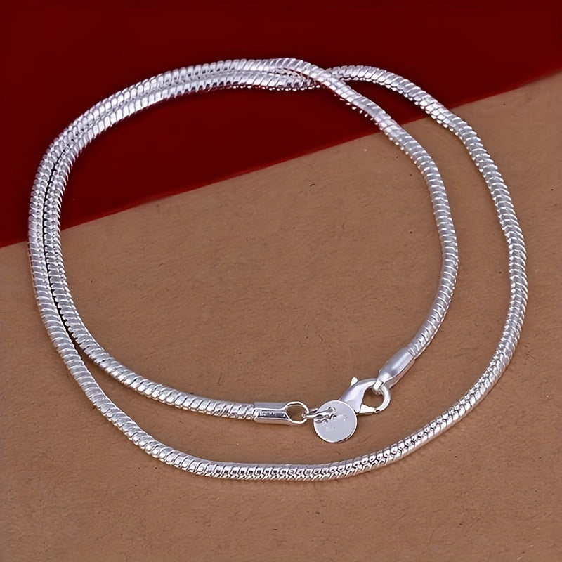 Add a stylish touch to your look with this 3MM snake bone chain necklace, featuring a silver plated design. Perfect for men's jewelry collection.