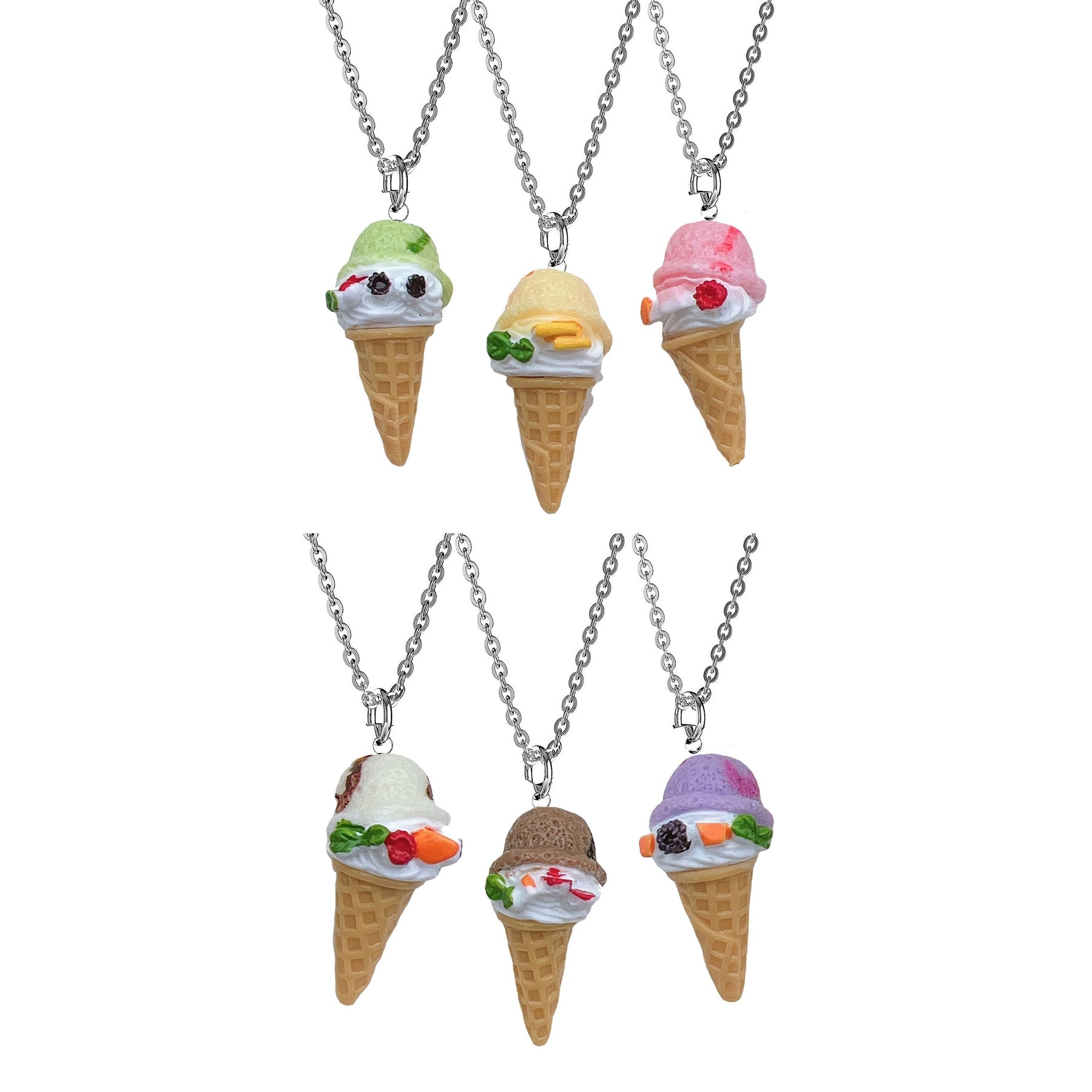 3pcs Dessert Pendant Necklace Set Ice Cream Cone Neck Jewelry