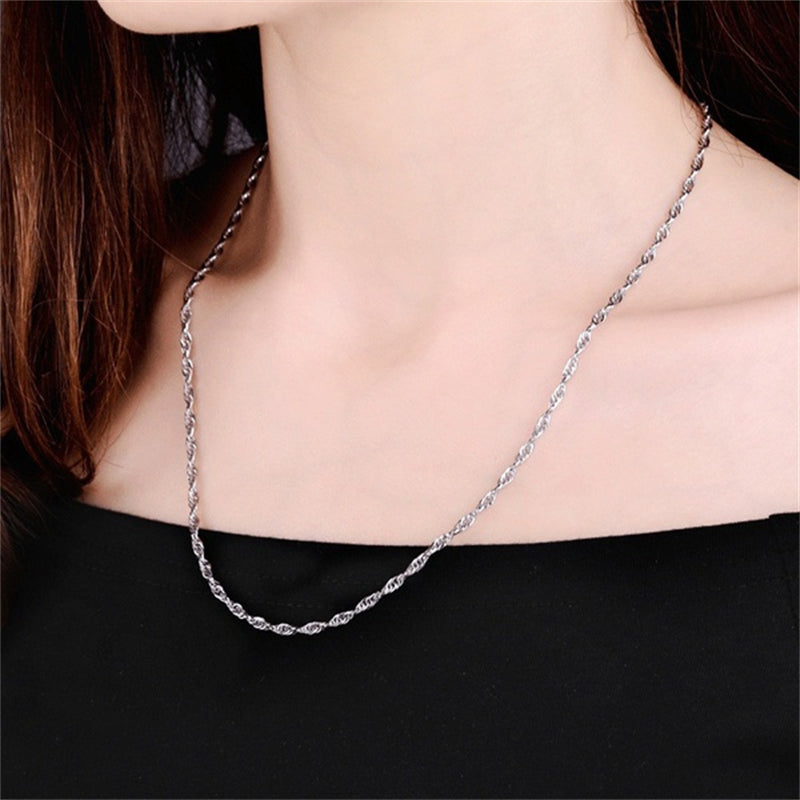 3Pcs Set 2mm Silver Plated Water Wave Chain Necklaces Couple Jewelry