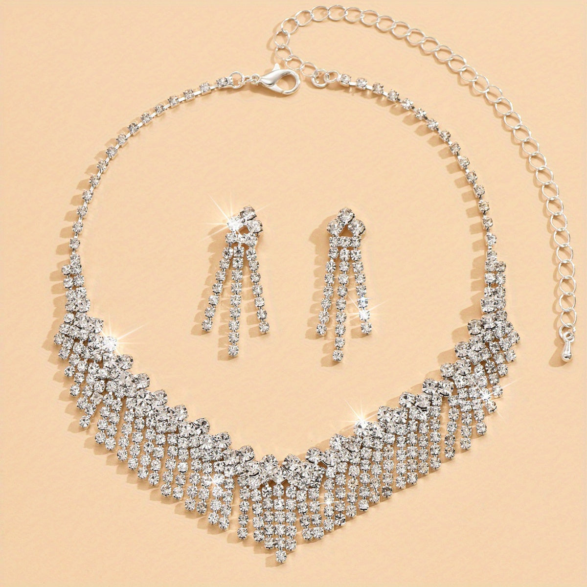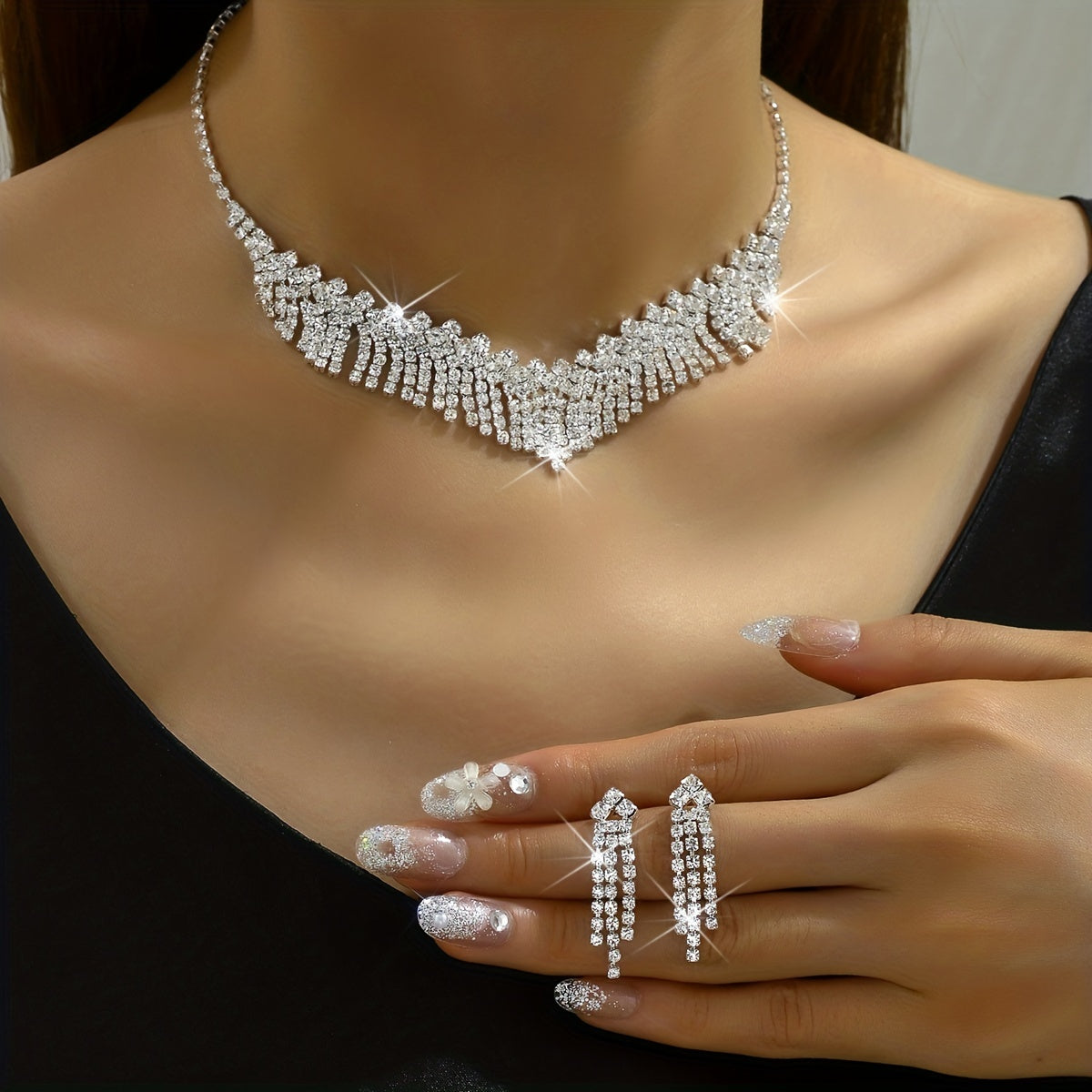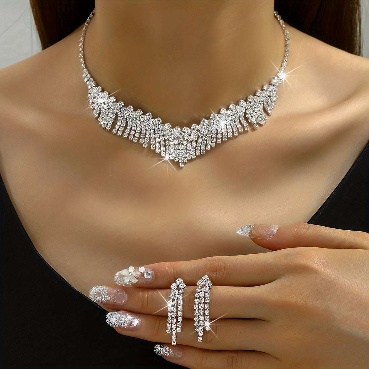 3pcs Silver Plated Rhinestone Jewelry Set for Evening Party Outfits
